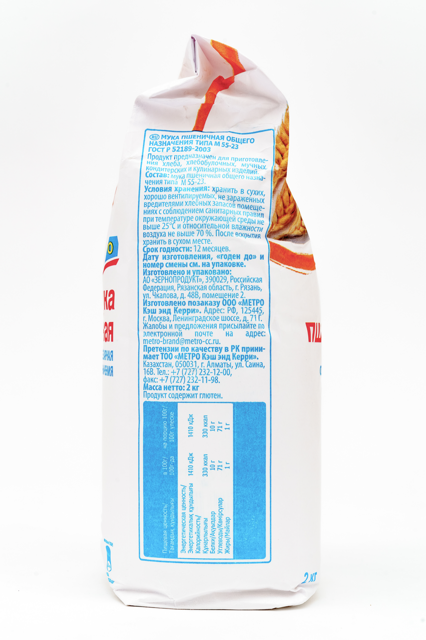 Основа легкой выпечки. Состав: мука пшеничная хлебопекарная высший сорт по ГОСТ 52189-03, пищевая поваренная морская соль. Пищевые добавки: разрыхлители- гидрокарбонат натрия (сода пищевая), регулятор кислотности-лимонная кислота. Пищевая ценность в 100г продукта: белки - 10г, жиры - 1,0г, углеводы -70г. Энергетическая ценность: 320 ккал. Хранить при температуре от +15'C до +25'C и относительной влажности не более 75%. Срок годности 12 месяцев. Состав короба: 6шт.