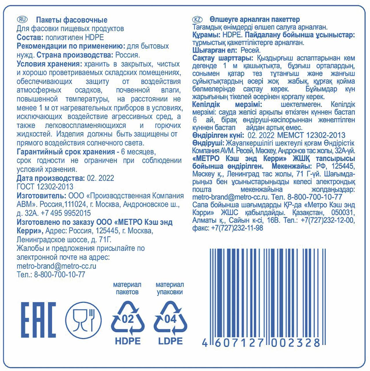 aro Пакеты фасовочные, 26 х 35 см, 8 мкрн, 1000 шт. выполнены из полиэтилена. Они предназначены для фасовки, хранения и перевозки различных продуктов (твердых, сыпучих, в том числе, теста, фруктов, сырных или колбасных нарезок). Полиэтилен низкого давления хорошо противостоит влаге и загрязнениям. Аксессуар имеет оптимальные размеры, поэтому вмещает практически любой пищевой и не только продукт. Прочный и надежный он обеспечивает защиту содержимого от повреждений, пыли и влаги. В одной упаковке поставляется 1000 шт. пакетов, которых хватает на продолжительный период эксплуатации. Их толщина составляет 8 мкм, что гарантирует надежность и предотвращает прорывы или повреждения в процессе использования. Важно избегать контакта изделия с огнем, нагревательными приборами и химическими веществами, а также воздействия ультрафиолета и высоких температур. Пакеты легко раскрываются, а также быстро и безопасно закрываются с помощью скрепок, скотча или других упаковочных материалов.