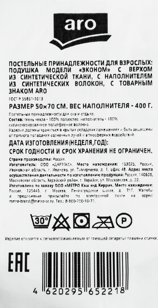 Подушка 50х70см. Наполнителем подушки модели Эконом торговой маркой aro является 100% полиэфирное силиконизированное волокно. Это современное синтетическое волокно, которое обладает высокой эластичностью и упругостью. Ткань верха подушки состоит из 100% полиэфира. Такой состав дает ряд преимуществ: доступная цена, легкость в уходе, быстрое высыхание, хорошая воздухопроницаемость, подходит для людей с аллергией на натуральные наполнители.