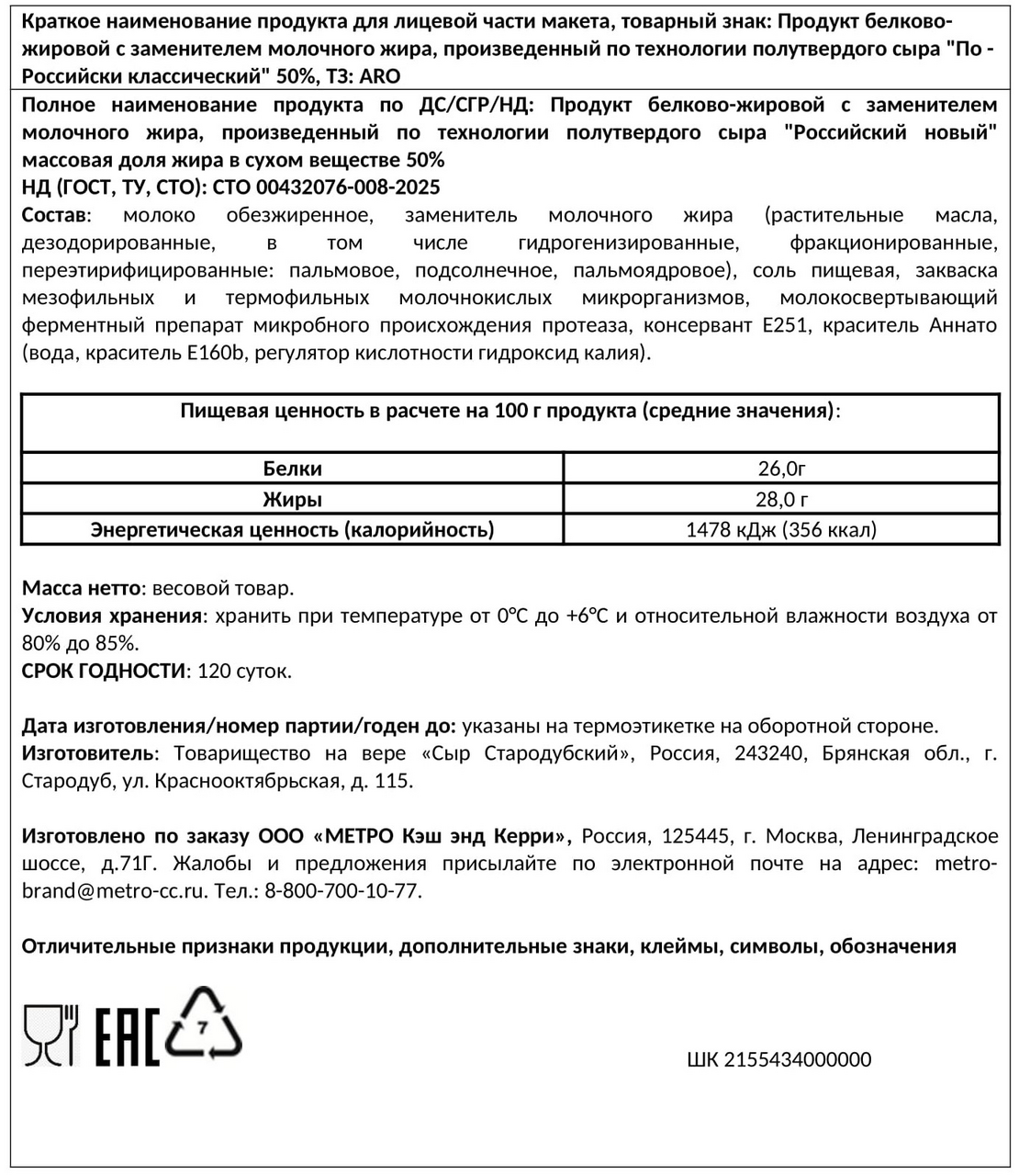 aro Продукт белково-жировой Российский новый 50%, ~5.2кг