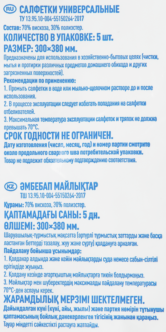 - Комплектация Салфетки - 5 шт.