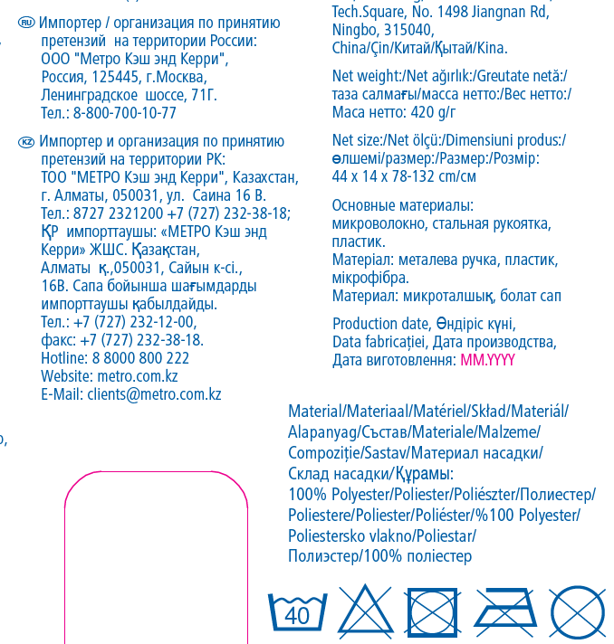 - Тип насадки Плоский моп