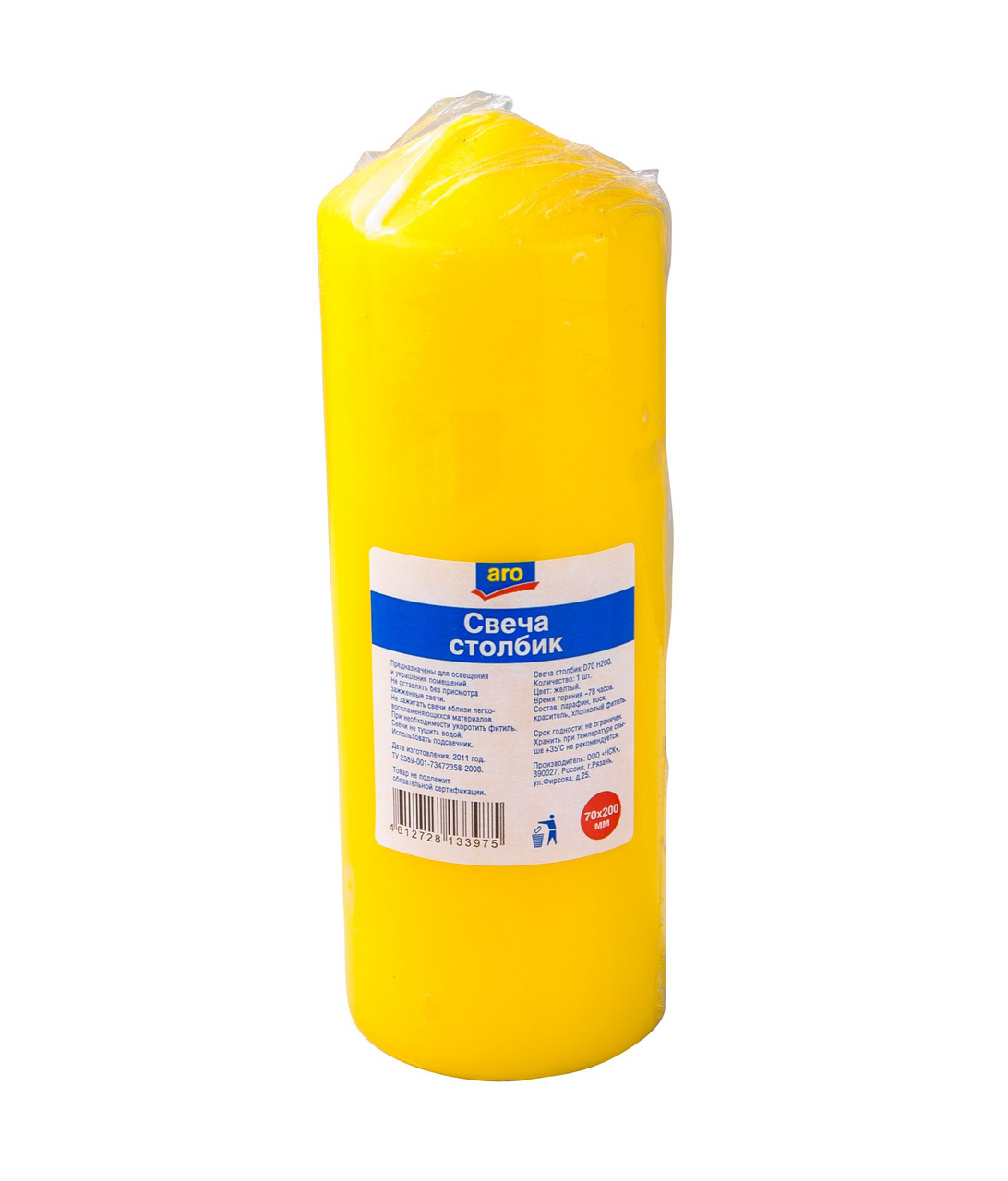 ARO СВЕЧА- СТОЛБИК ЖЕЛТАЯ 20СМ