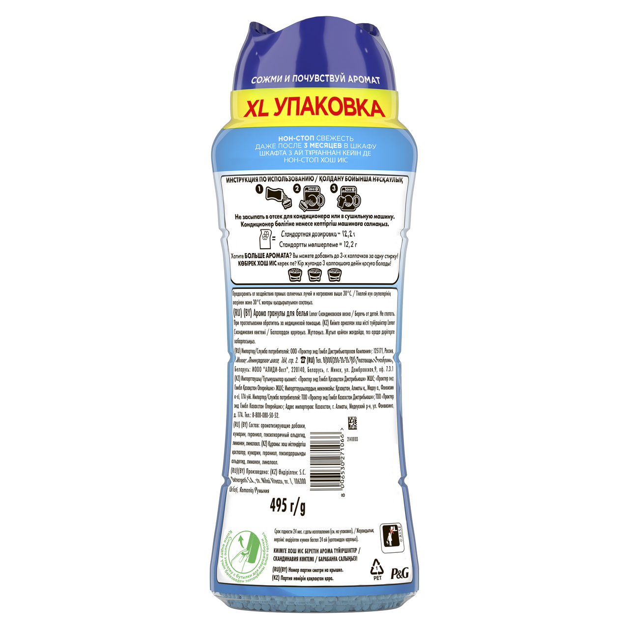Легендарный Lenor возвращается в новом формате: оригинальные парфюмированные гранулы для стирки, наполняющие белье длительным ароматом всеми любимых кондиционеров. Концентрированная формула с повышенным содержанием ароматических компонентов обеспечивает стойкий, насыщенный шлейф, который сохраняется до 3 месяцев даже при хранении белья в шкафу. Аромат Скандинавская весна. Представьте себе аккорд, взятый на хрустальном колокольчике: чистый, звонкий, прозрачный. Это и будет основой аромата Скандинавская весна. В композиции присутствуют свежие и цветочные ноты с лёгким дуновением прохлады. Это не просто запах, это ощущение пробуждения. Ваше белье будет обволакивать вас этим воздушным шлейфом, напоминая о первом дыхании весны.