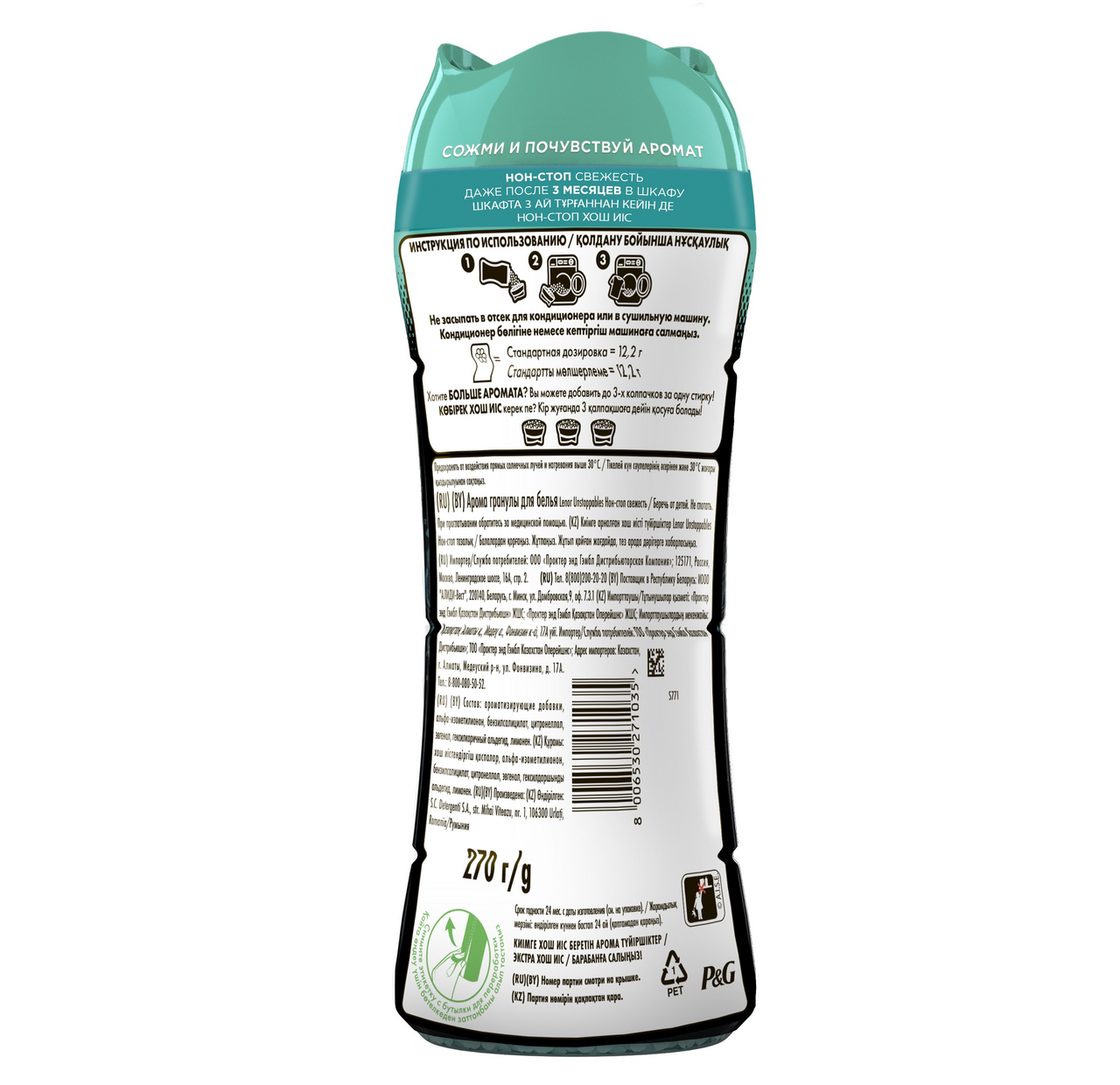 Легендарный Lenor возвращается в новом формате: оригинальные парфюмированные гранулы для стирки, наполняющие белье длительным ароматом всеми любимых кондиционеров. Концентрированная формула с повышенным содержанием ароматических компонентов обеспечивает стойкий, насыщенный шлейф, который сохраняется до 3 месяцев даже при хранении белья в шкафу. Аромат Unstoppables. Нон-стоп свежесть Это квинтэссенция бодрости и чистоты. Композиция вдохновлена ощущением свежевыстиранного белья и прохладного воздуха. Первая аккорд – ледяной и искрящийся, как всплеск горного источника. В основе преобладают чистые и яркие аква-ноты с лёгким цитрусовым акцентом. Аромат длительной свежести и энергии. Ритм, который невозможно остановить.