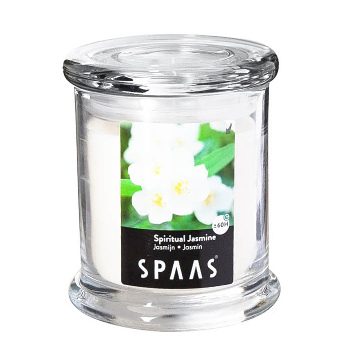 Благодаря своей форме, яркому пламени и приятному аромату жасмина, эта свеча станет прекрасным украшением интерьера для торжества или романтического вечера, создав теплую и уютную атмосферу. Стеклянная, плотно закрывающаяся крышка надолго сохранит приятный аромат, а правильное сочетание воска и фитиля гарантируют, что свечи Spaas горят ярким, стабильным пламенем и могут быть снова зажжены в любой момент. Время горения арома свечи "Божественный жасмин" 60 часов.