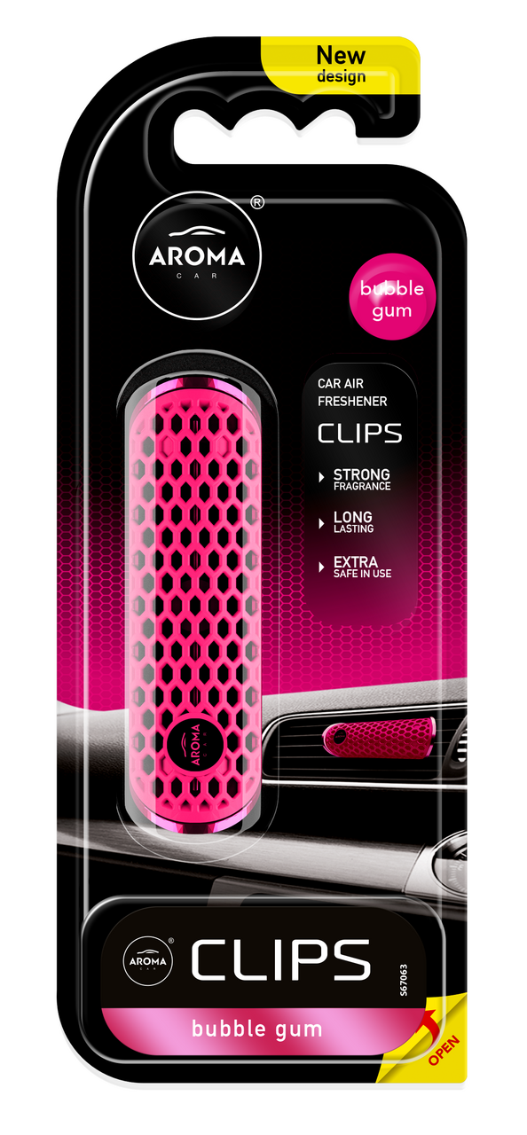Ароматизатор воздуха Aroma Car CLIPS Bubble Gum предназначен для автомобиля, дома или офиса. Хорошо устраняет запахи, источает приятный аромат.