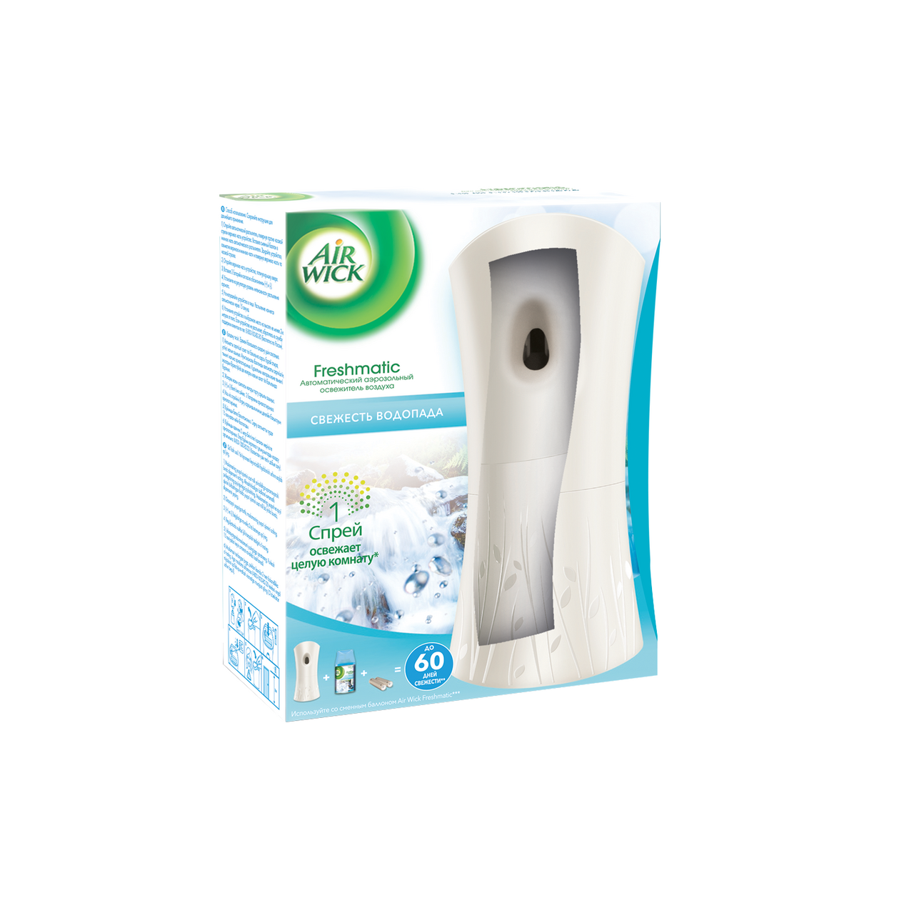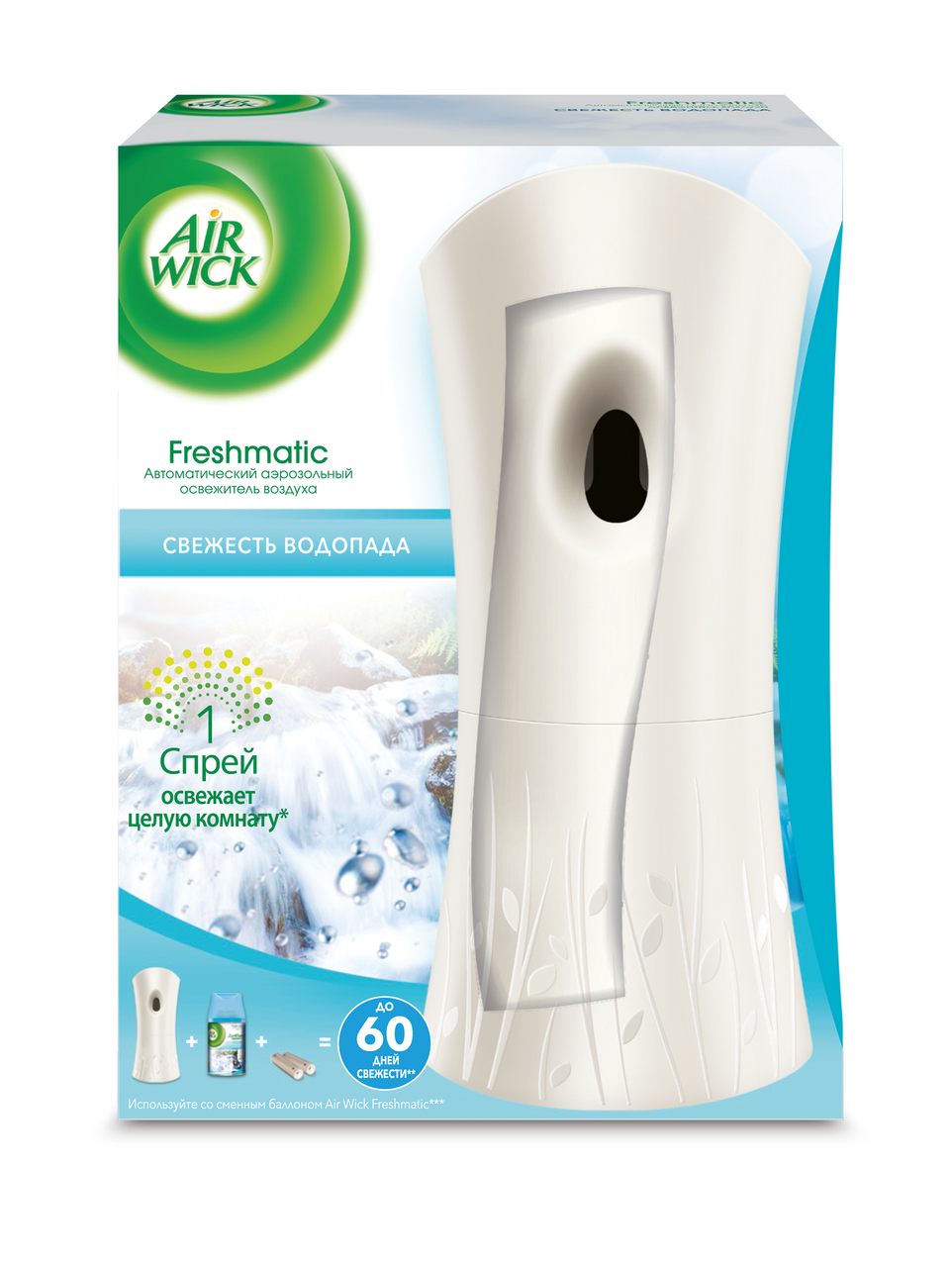 Автоматический освежитель воздуха Air Wick Freshmatic – это небольшое стильное устройство, которое автоматически борется с неприятными запахами* день за днём. Аромат "Свежесть водопада" наполнит Ваш дом свежестью океана с легкими цитрусовыми нотками. Вставьте сменный баллон в элегантное устройство, выберите интенсивность распыления и наслаждайтесь изысканными ароматами Air Wick!