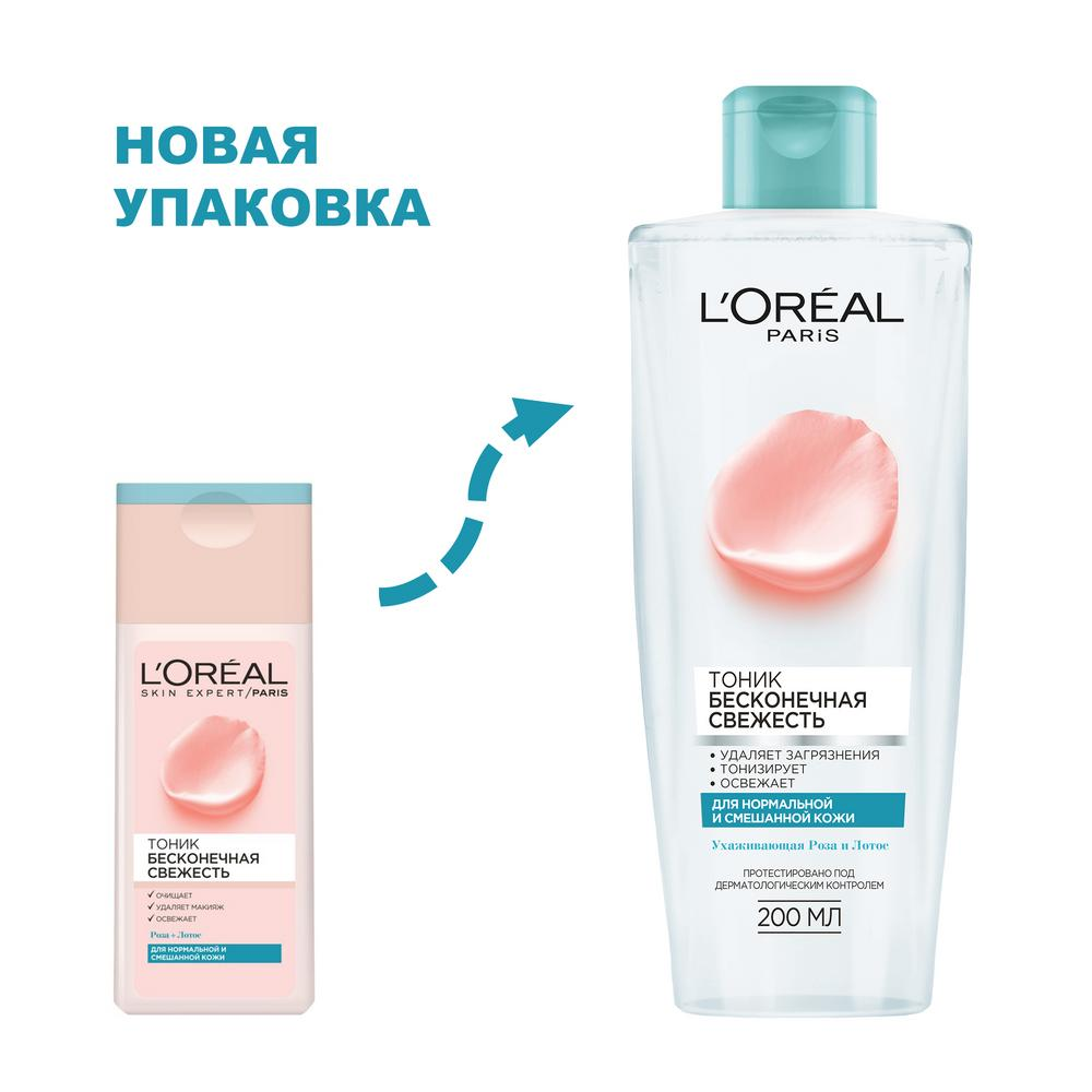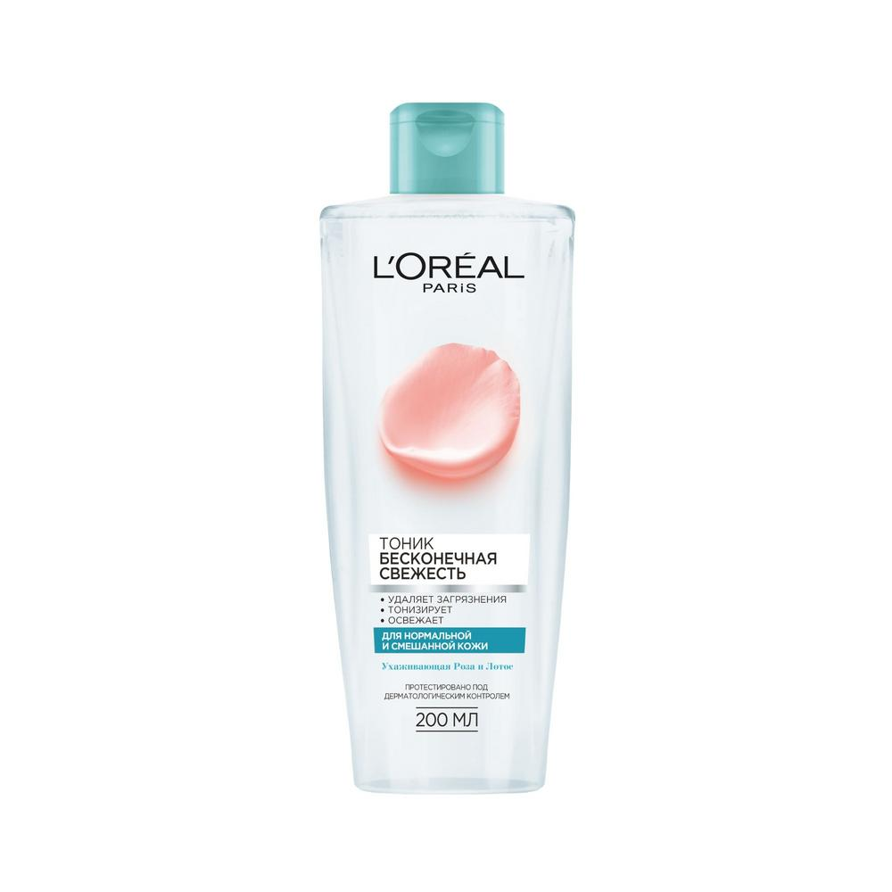 Тоник для лица L'Oreal Paris Бесконечная свежесть с экстрактами розы и лотоса для нормальной и смешанной кожи, 200мл