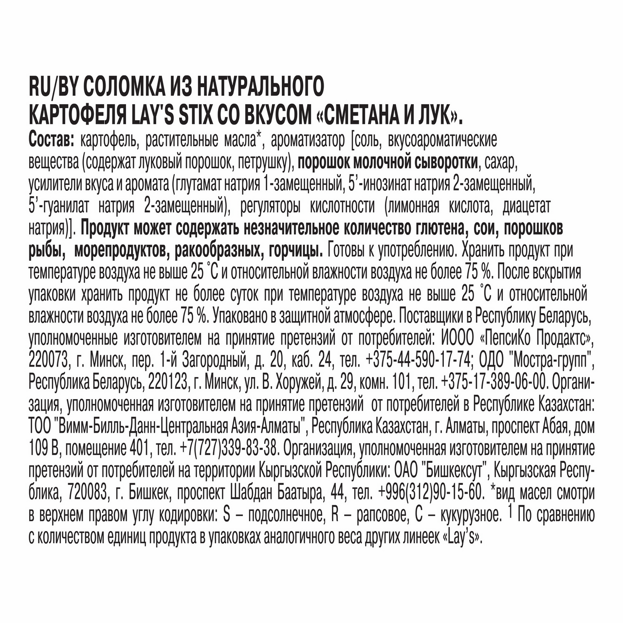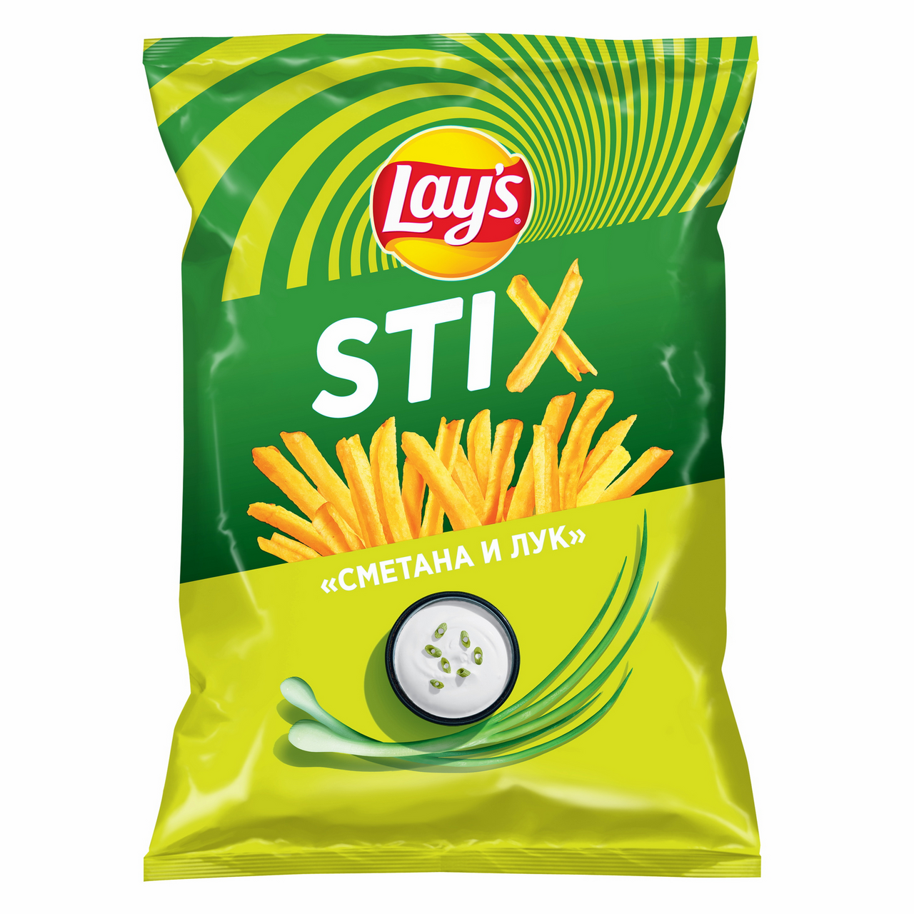 Познакомьтесь сLAY'SSTIX! Мынарезаем натуральный картофель напалочки, жарим его дохрустящей корочки идобавляем ароматные специи. LAY'SSTIX имеют уникальную V-образную форму, что делает ихеще более хрустящими. Вкаждой пачке таится большое количество палочек— ими удобно делиться ссемьёй идрузьями! ?Вкус свежей деревенской сметаны и аромат молодого зеленого лука — отличные спутники для хрустящей картошки. Попробовав однажды эти рифленые чипсы, вы никогда не сможете забыть их нежно-сливочный вкус.
