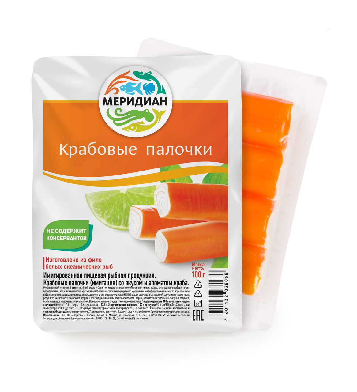 Крабовые палочки МЕРИДИАН охлажденные, 100гх3