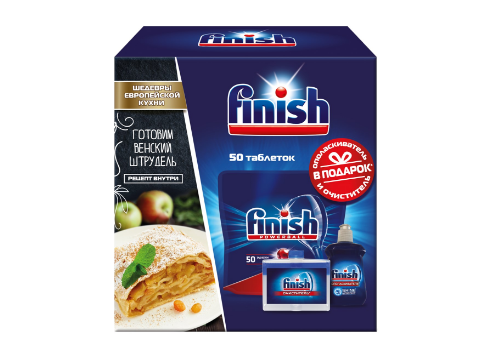 Набор для посудомоечной машины Finish Шедевры европейской кухни с очистителем и ополаскивателем 50 шт