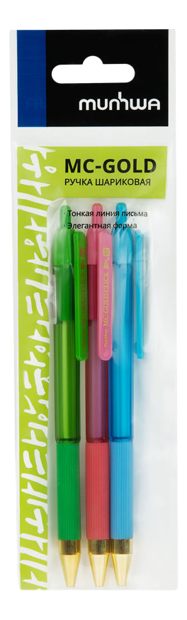 Ручка шариковая Munhwa MC Gold Click, синяя, 0,5 мм 3 шт