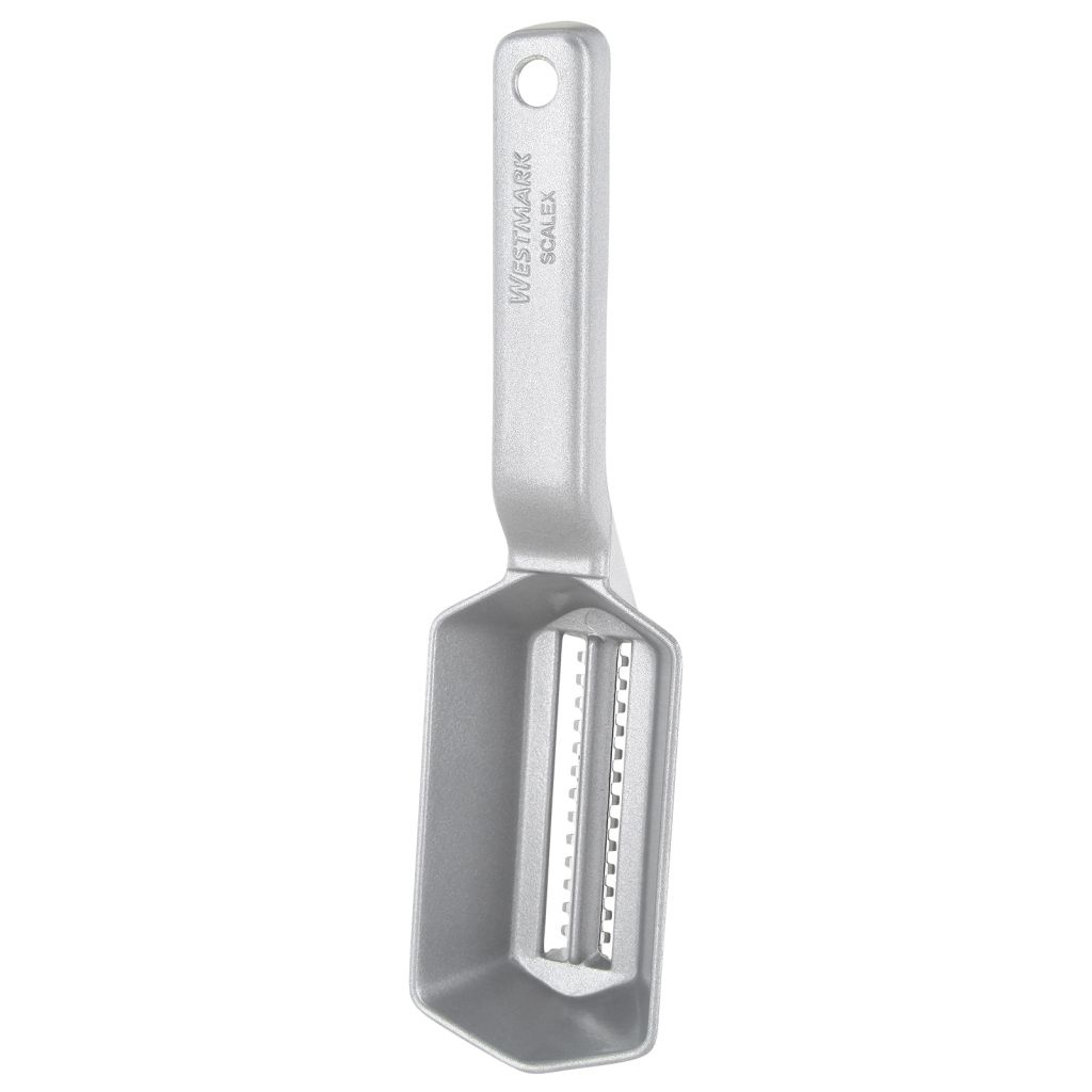 Нож для чистки рыбы Westmark с контейнером поможет быстро и аккуратно удалить чешую с тушки. При использовании обычного ножа чешуйки разлетаются в разные стороны. При использовании специального аксессуара это исключено – все они попадут в специальный контейнер. Достаточно несколько раз провести по рыбе остро заточенным рифленым лезвием, чтобы получить идеальный результат и сохранить чистоту на кухне. Такой результат оценят домохозяйки и профессиональные повара. Конструкция ножа позволяет быстро обработать большое количество рыбы. У ручки эргономичная форма, она удобно лежит в руке и не вызывает напряжения мышц. Фигурные лезвия легко снимают даже плотно прилегающую и мелкую чешую. После окончания работы чешуйки просто вытряхиваются из контейнера. После этого изделие можно помыть под холодной или горячей водой с любыми моющими средствами. Изготовлено изделие из нержавеющей стали. Это прочный материал, абсолютно безопасный для человека. В нем отсутствуют токсичные примеси. При контакте с рыбой он не впитывает запах, характерный аромат остается лишь на поверхности ножа и легко удаляется. Для этого часто используется лимонный сок. При контакте с ним металл не окисляется. Он не подвержен коррозии. Хорошо заточенные лезвия сохраняют остроту долгое время даже при интенсивном использовании.