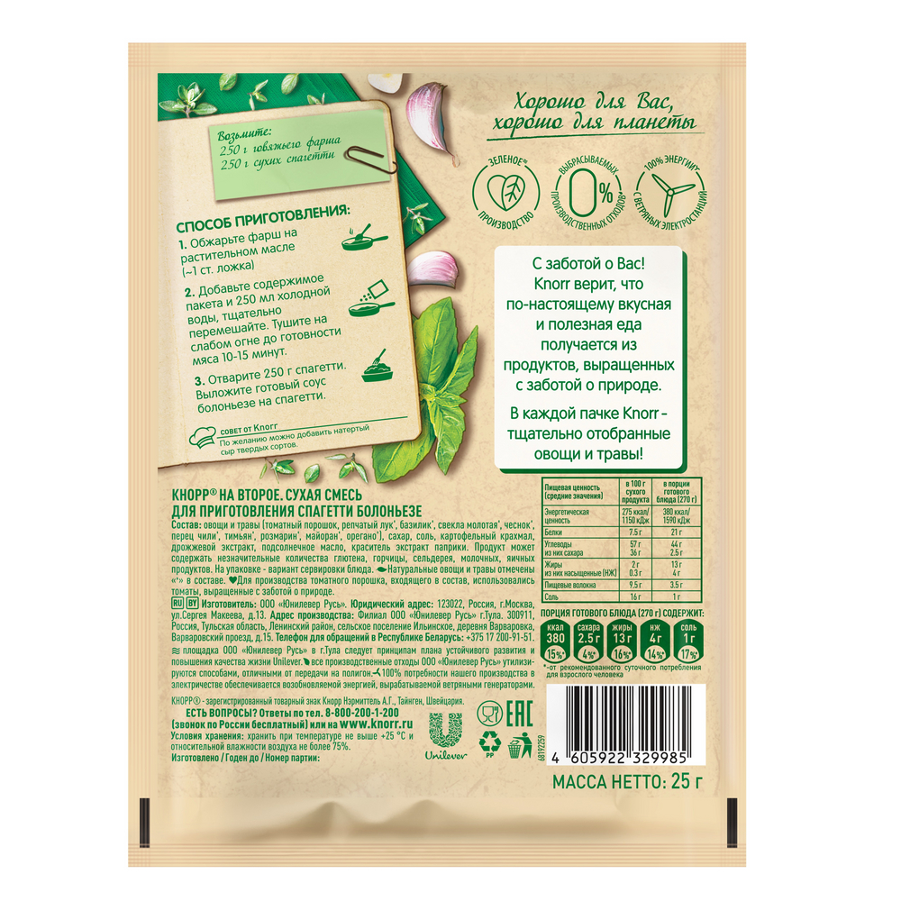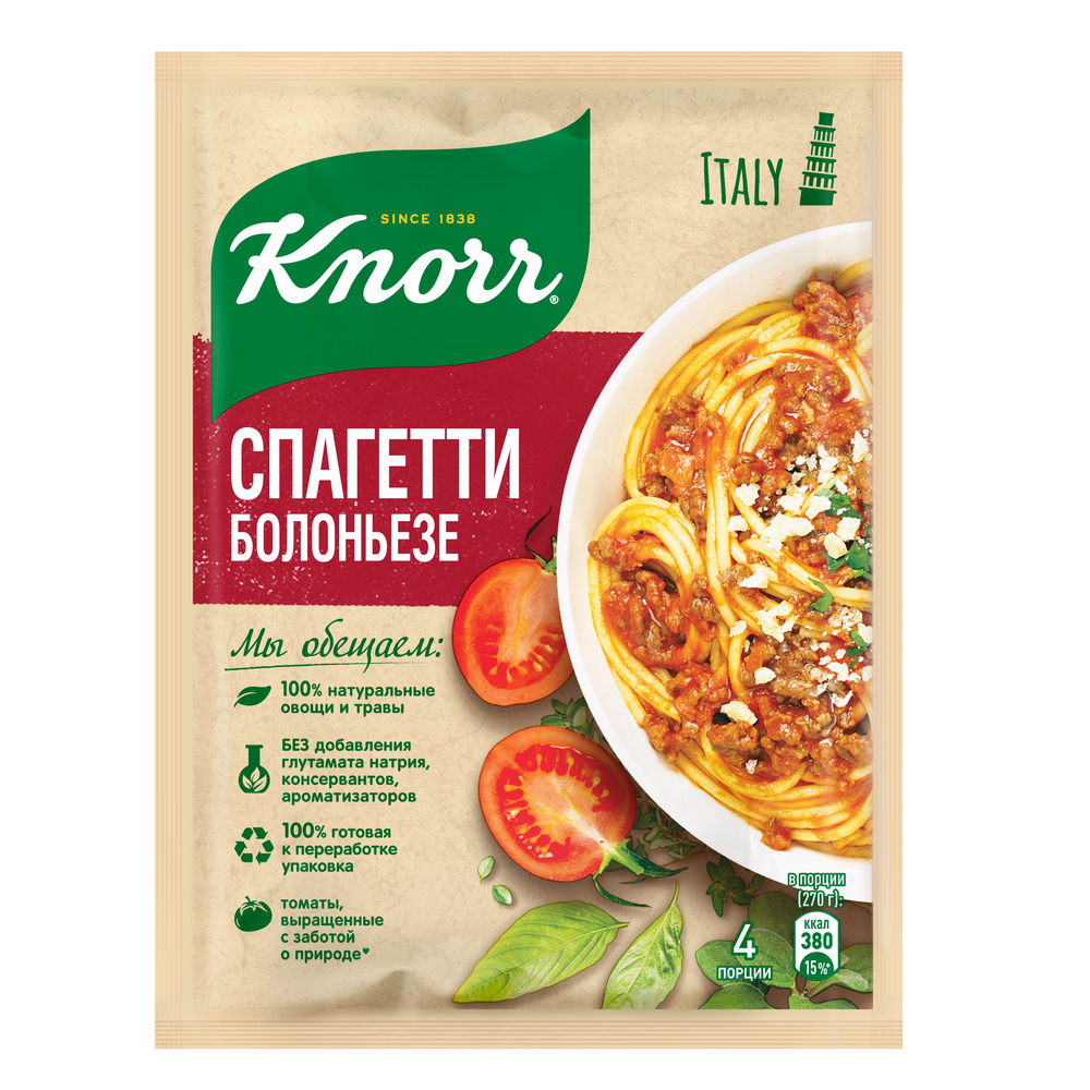 Итальянскую кухню любят во всем мире благодаря разнообразию соусов, приправ и пряностей для пасты, маккерони, феттучини и других блюд. Решиться провести томный летний вечер в Тоскане, Сицилии, Кампании или сердце Болоньи получится, не выходя из дома. Удивите семью изысканными спагетти Болоньезе с помощью итальянской приправы Knorr, которая отличается насыщенным ароматом, сбалансированным сочетанием спелых тома��ов и средиземноморских трав. Они привносят в блюдо яркие акценты, а роскошный ужин всегда сопровождается фразой: Buon appetito! Для приготовления соуса необходимо обжарить на растительном масле лук, морковь и фарш до золотистого цвета. После этого в сковороду добавляются помидоры, специи Knorr и 250 мл холодной воды. Такая смесь тушится на слабом огне 15-20 минут, после чего ею поливают готовую пасту. Идеальный вкус Болоньезе получается благодаря первоклассным ингредиентам: 100% натуральным овощам, выращенным с заботой о природе, а также травам (базилику, тимьяну, орегано, розмарину, майорану). Приправа не содержит глутамата натрия, консервантов, искусственных красителей, а насыщенный цвет ей придает натуральный экстракт паприки. Бренд Knorr стремится откры��ь новые впечатления, абсолютно не навредив человеку и природе. Содержимое пачки заключено в экологичную упаковку из фольгированной бумаги. Компактные размеры пакета (130х170х9 мм) позволяют удобно хранить приправу, дополнительно не пересыпая ее в банки для специй. Производитель уже позаботился о бережном выращивании овощей и зелени на тысячах ферм, чтобы предложить исключительный вкус для вторых блюд и легкость их приготовления. Особая смесь на второе для спагетти Болоньезе способна за несколько минут превратит обычный ужин в праздничный, после которого точно захочется сказать: Grazie!