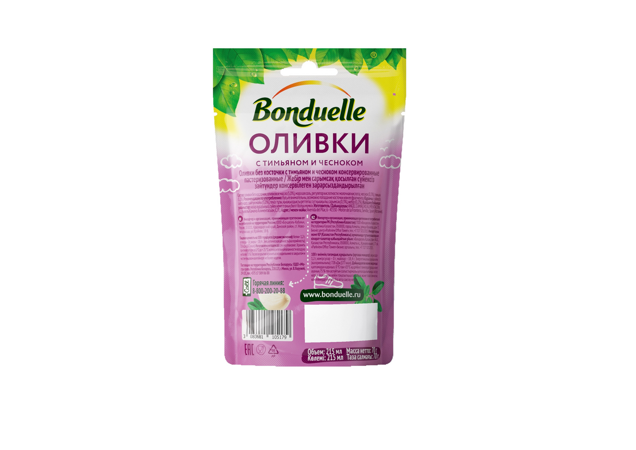 Оливки с тимьяном и чесноком - объединяют характерные гастрономические ноты Прованса. Теперь вы можете устроить себе перекус с французским акцентом где угодно: на работе или на учебе, на пикнике или на прогулке, в дороге или в путешествии. Новинка от Бондюэль - это не только пикантный вкус, но и уникальная упаковка. Пакетики удобно брать с собой: легкие и компактные, они не займут много места - идеальное решение на каждый день.