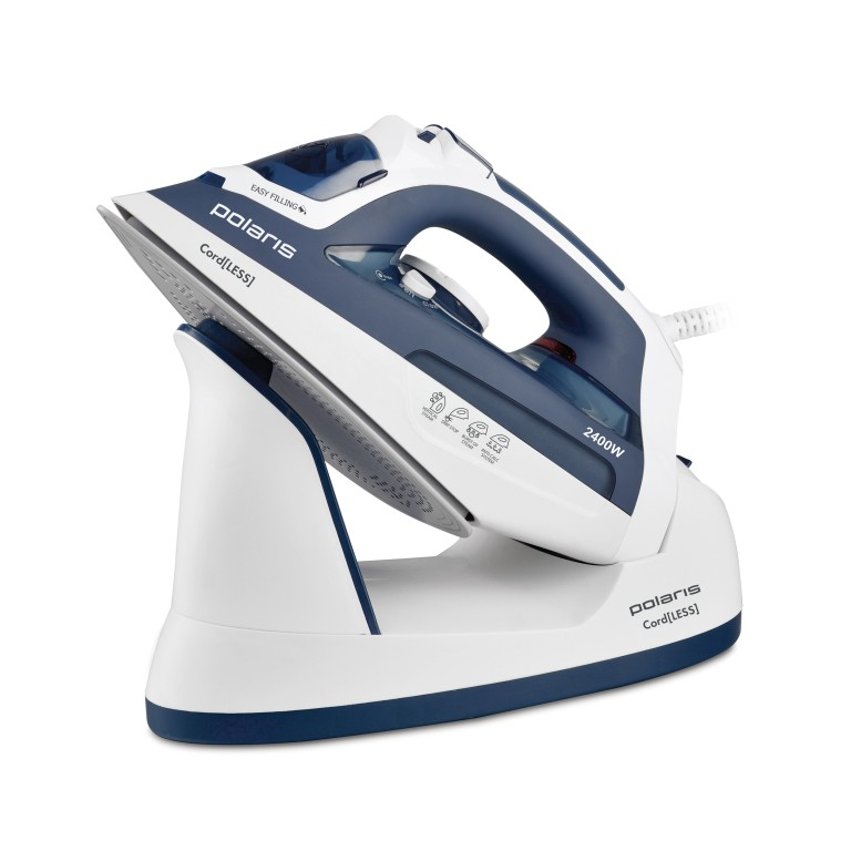 Утюг POLARIS 2479K CORD беспроводной – это легкое глажение белья. Больше не нужно искать свободную розетку или зависеть от длины кабеля – маневренность и свобода движений для отличного результата обеспечивается беспроводным подключением. Для работы традиционным способом в комплекте предусмотрен кабель длиной 1,8 м. База устанавливается на любую гладильную доску, закрепляется на ней для надежности встроенными фиксаторами. Утюг, снятый с базы, работает автономно до 40 секунд, после чего его нужно снова поместить на базу для нагревания, которое осуществляется за 5 секунд.Модель оборудована увеличенными резервуаром для воды емкостью 500 мл и имеет модернизированную систему парообразования. Противокапельная система предотвращает попадание воды на ткань и ее вытекание, когда утюг стоит на базе или находится в вертикальном положении. Доступен режим вертикального отпаривания для обработки штор или одежды на вешалках.Керамическое антипригарное покрытие подошвы утюга идеально гладкое и легко скользит по любому типу ткани, обеспечивая комфортное глажение. Купить утюг POLARIS 2479K CORD беспроводной вы можете в торговом центре METRO.Производитель: POLARIS, Китай.Комплектация: утюг, база, мерный стакан.