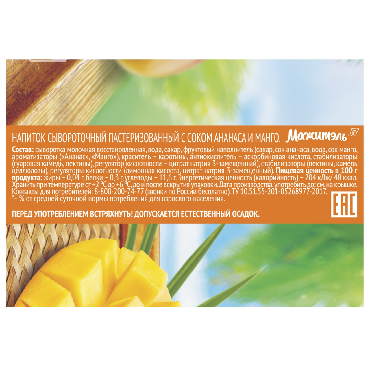 Напиток Мажитэль сывороточный с соком ананаса и манго 0.03% 950 г