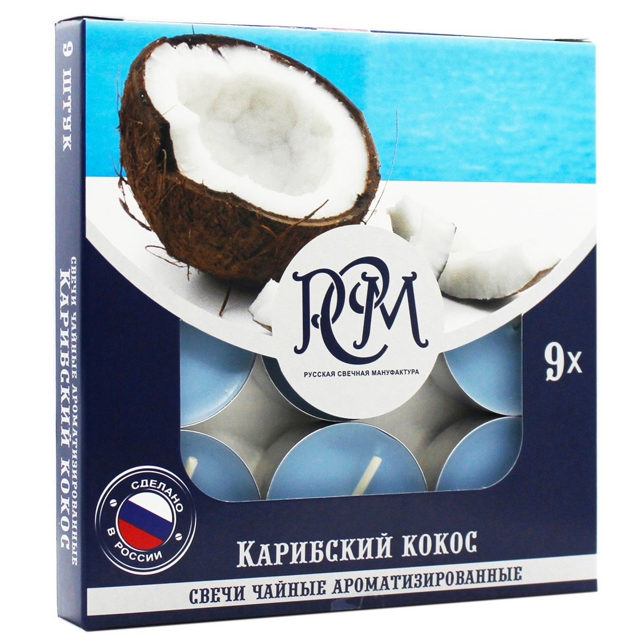 Свечи чайные ароматические РСМ Карибский кокос, 9шт