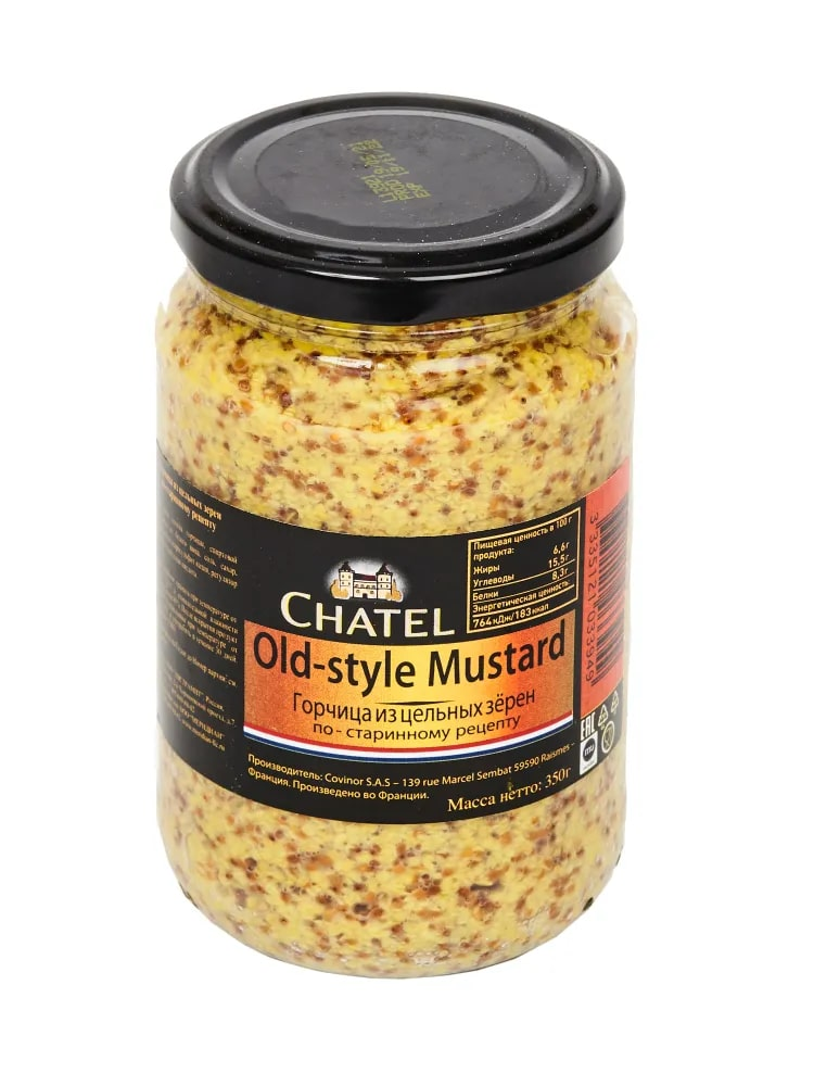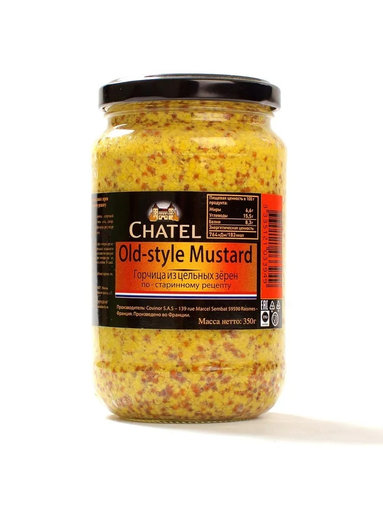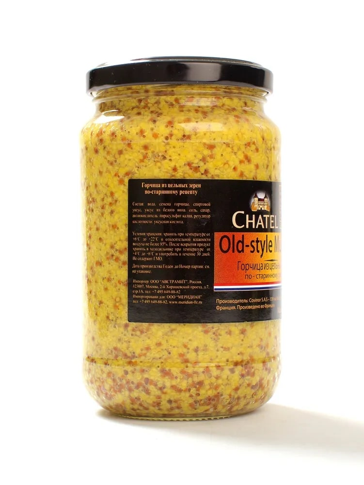 Горчица зернистая — это кулинарная приправа, получаемая из цельных зерен горчицы. Это растение обладает острым вкусом и выраженным ароматом. Приправу используют для приготовления соусов, добавляют во вторые блюда и закуски.Остро-сладкая горчица из цельных зерен "Chatel" - восхитительная приправа для мяса, колбасок и сосисок, заливного.