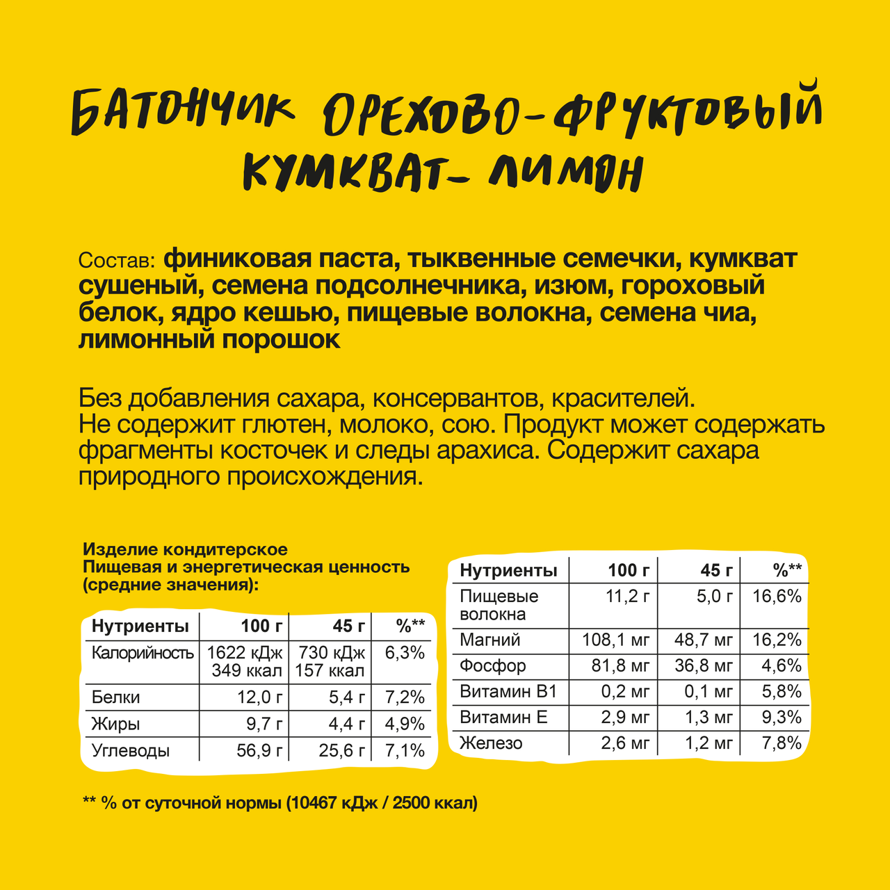 Батончик фруктово-ореховый Take A Bite Тонус Кумкват-Лимон, 45г