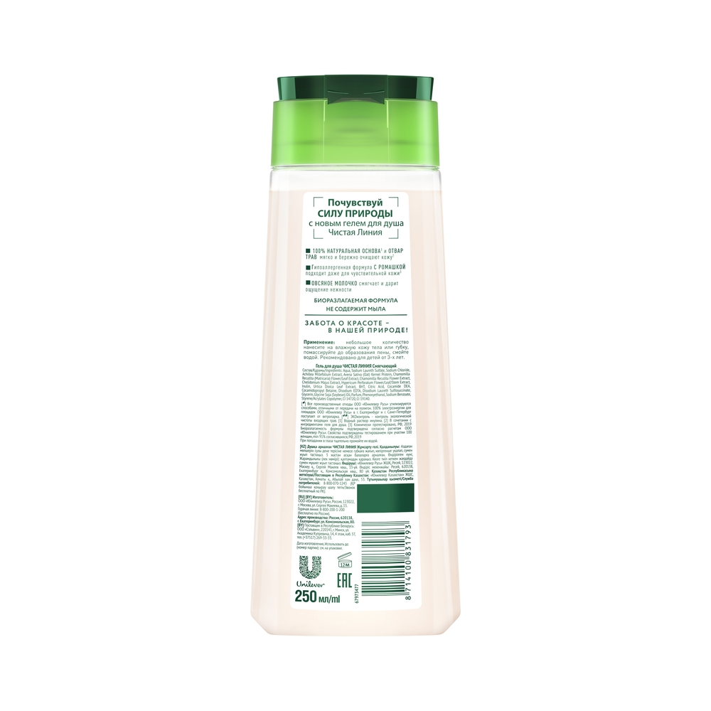 Гель для душа Чистая Линия Смягчающий Ромашка и овсяное молочко, 250мл