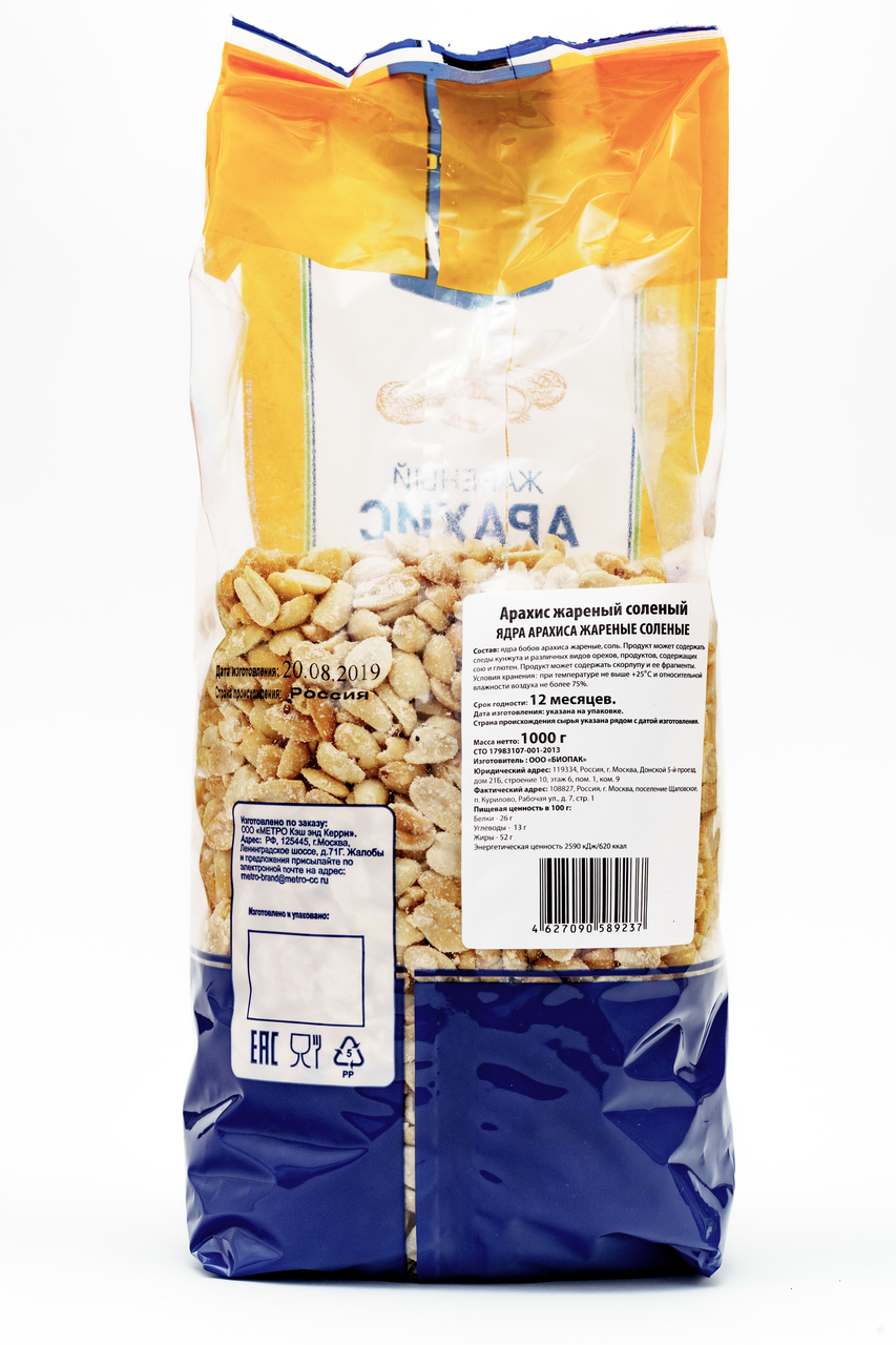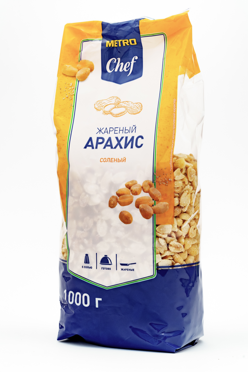 Арахис METRO CHEF соленый – жареные на растительном масле ореховые ядра. Продукта приготовлен с небольшим добавлением поваренной соли и не содержит консервантов. Орехи подойдут в качестве холодной закуски, а также являются вариантом быстрого перекуса в течение дня. Они сочетаются с разными сортами пива и слабоалкогольных напитков, а также станут дополнением для разнообразных салатов, мясных блюд и гарниров.Продукт высококалорийный, поэтому способен эффективно насыщать, а удобная эргономичная упаковка позволяет всегда носить его с собой. Полностью герметичный пакет способствует длительному сохранению вкусовых качеств и аромата жареного арахиса без потери полезных свойств, а также орешки будут оставаться хрустящими в течение долгого времени.Продукт Metro Chef богат большим количеством витаминов и жирных аминокислот, поэтому подойдет для детей и взрослых, подарит заряд энергии, а также активизирует умственную и физическую деятельность. Купить арахис METRO CHEF жареный соленый вы можете в торговом центре METRO.Производитель: Metro, Россия.Состав: арахис жареный, соль.Пищевая ценность: белки ––21 г, жиры –– 33 г, углеводы –– 28 г.Энергетическая ценность: 490 ккал.Срок годности: 6 месяцев.