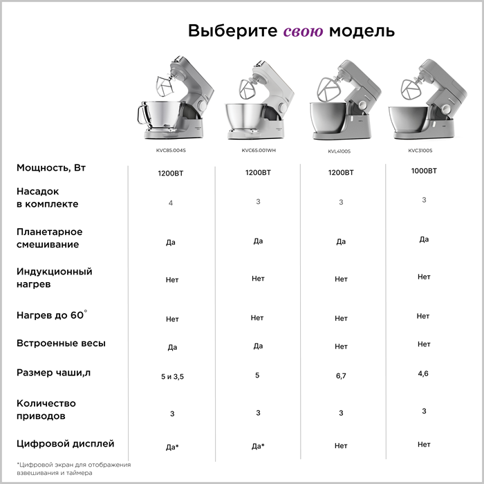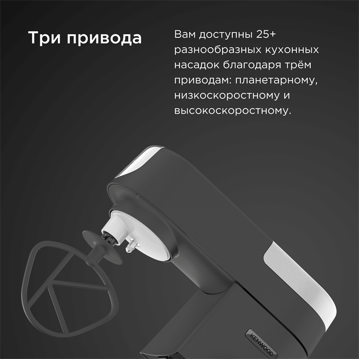 Красивая, надежная и высокопроизводительная машина для регулярного использования. Металлический корпус высокой прочности, который, кроме того, выглядит очень солидно. Причем, даже несмотря на материал корпуса общий вес машины сравнительно невелик. При необходимости вы без труда сможете ее перемещать с места на место. Верхняя часть корпуса поднимается, что позволяет быстро сменить насадки в процессе готовки. Kenwood KVC 3100 S Chef имеет сразу 3 привода. Обратите внимание, что низкоскоростной привод в верхней передней части скрыт под колпачком с логотипом. Да и в целом аппарат выполнен максимально обтекаемым, без лишних выступов.Один из его секретов, это оригинальная система планетарного смешивания. Именно за счет ее использования все насадки показывают большую производительность. Дело в том, что вращаются не только сами насадки, но и основание, к которому они подключены. То есть, за один полный оборот с стенок чаши снимаются все ингредиенты и ни грамма продуктов не пропадает зря. Так обеспечивается максимально равномерное, качественное перемешивание. Kenwood KVC 3100 S Chef оснащается металлической чашей емкостью 4,6 литра с удобными боковыми рукоятками и градуированной шкалой на внутренне�� поверхности.Мощный мотор данного аппарата запускается и работает плавно, всегда с минимальной скорости (даже если сразу установить поворотный переключатель на самый максимум). Это необходимо не только для защиты систем от перегрева, но и для большего контроля над процессом смешивания. Функциональность кухонной машины зависит и от того, какую насадку вы собираетесь использовать. Например, только к низкоскоростному приводу можно подключить мясорубку, терку-ломтерезку или насадку для нарезки кубиками. В базовой комплектации, сразу при покупке, вы получите фирменную универсальную К-образную насадку, крюк-тестомес (в первую очередь подойдет для замешивания густого теста) и венчик-взбиватель, а вот все прочие насадки и аксессуары уже можно докупить отдельно, по мере надобности. Однако, как показывает практика и в самой минимальной комплектации KVC 3100 S Chef является отличным помощником домашнего повара.
