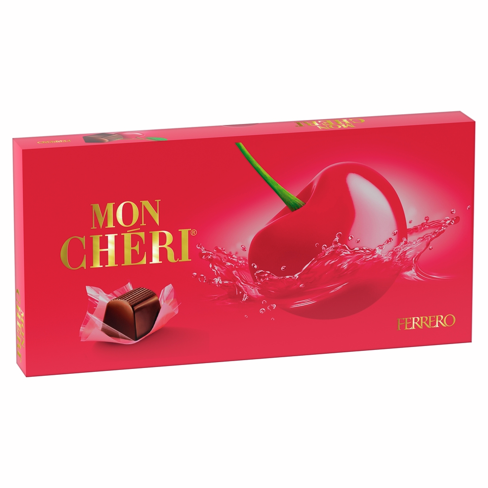 Конфеты Mon Cheri с вишней и ликером, 157г выпускаются популярным брендом, славящимся качеством своей продукции. В составе только натуральные продукты: темный шоколад с повышенным содержанием какао, благородный вкус которого оттеняется сочной и пряной вишней в обрамлении сладкого ликера. Ягода для начинки специально выращиваются в экологически чистом районе Португалии. Изысканный вкус станет приятным дополнением к чаепитию, элегантная коробка со сладостями также выступит стильным презентом для ценителей качественного шоколада.