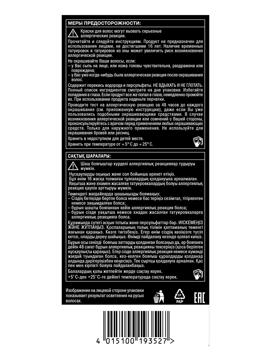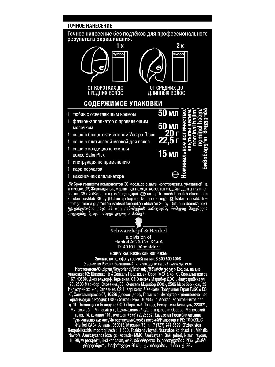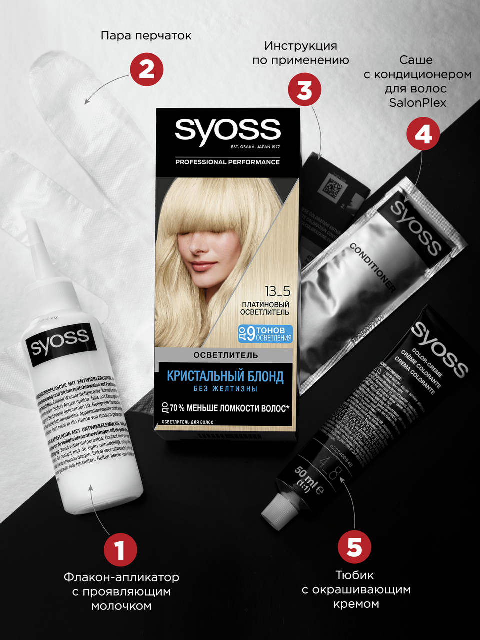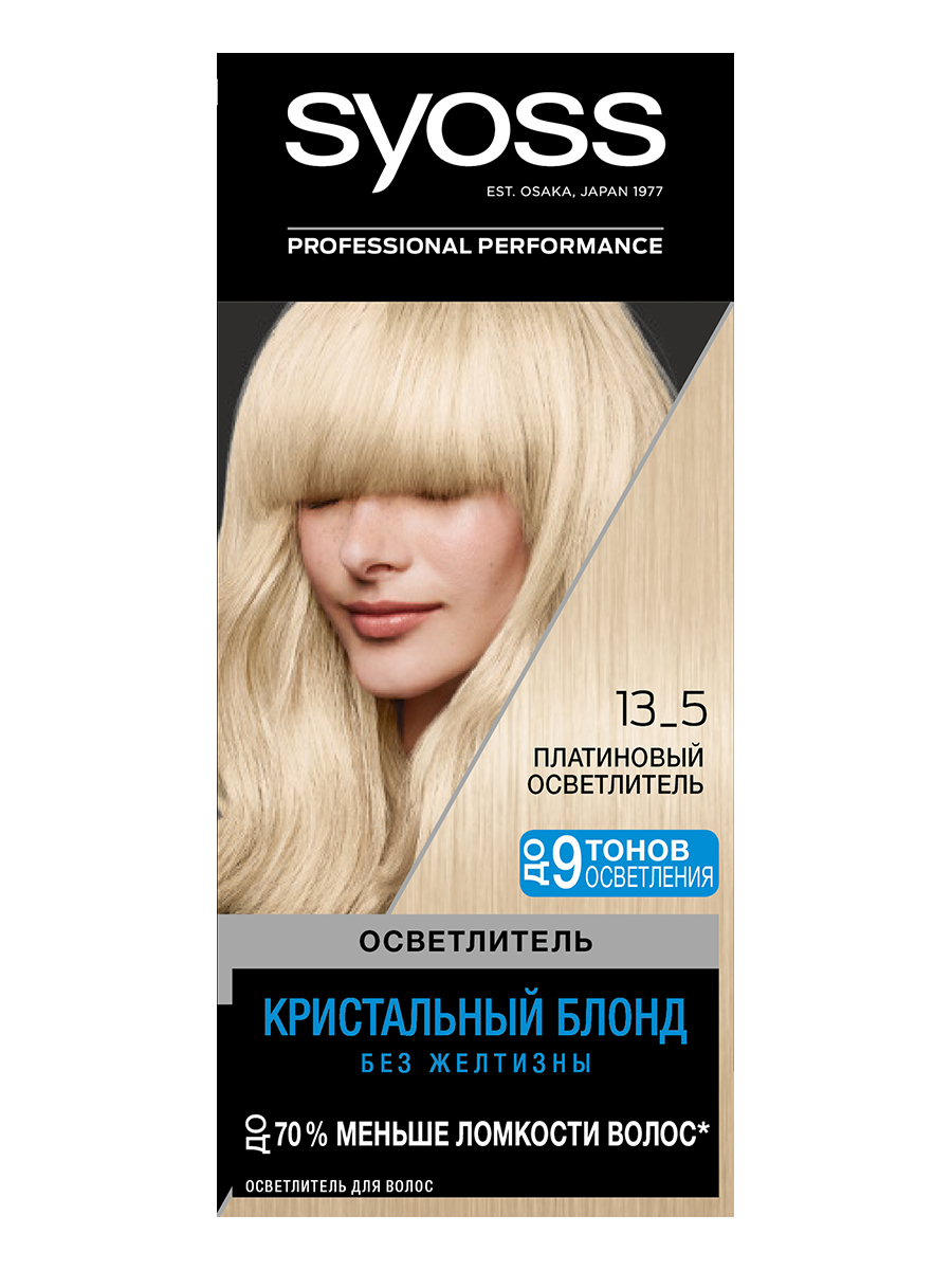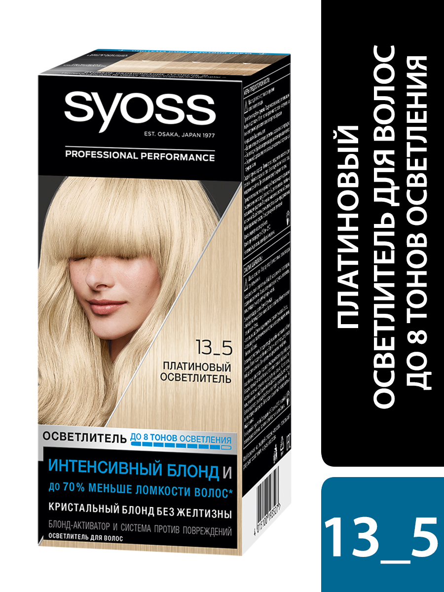 Осветлитель для волос Сьёсс Ультра осветлитель 13-5 с блонд-активатором и системой против повреждений. Осветляющая формула глубоко проникает в волокна волоса и нейтрализуют желтизну, позволяя добиться кристального блонда и осветления до 9 тонов. Ухаживающая технология Salonplex реставрирует повреждённые связи в структуре волоса и восстанавливает волосы изнутри. Формула с кератином покрывает кутикулу волос, делая их более мягкими и гладкими. Для визуально улучшенного качества волос* и до 70% меньше ломкости волос*. Подходит для волос от светло-каштановых до тёмно-каштановых оттенков. Для волос с незначительным содержанием седины. *по сравнению с волосами, окрашенными без применения технологии Salonplex.