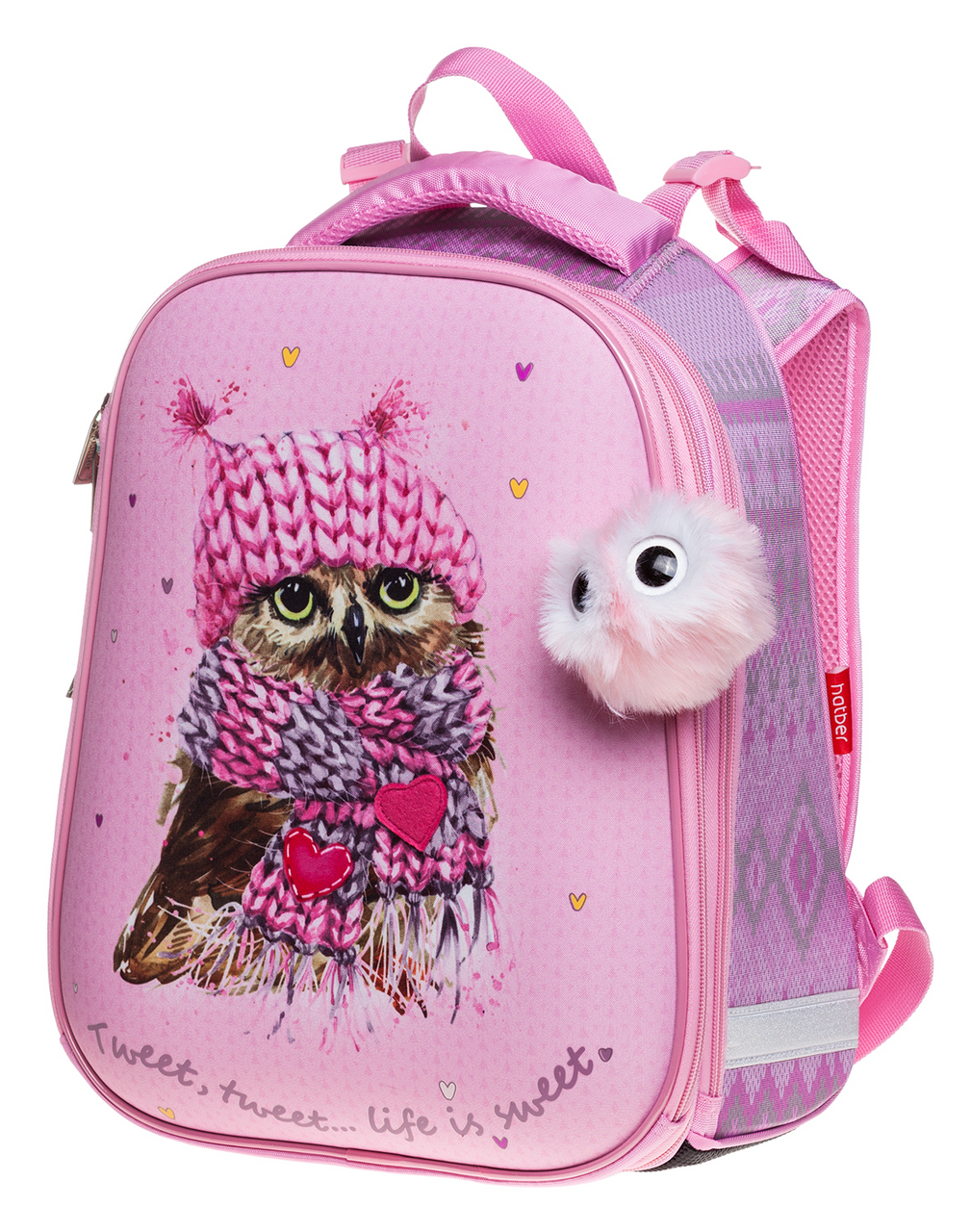 Рюкзак HATBER Ergo Сова, 37х29х17 см предназначен для учениц начальной школы. Модель изготовлена из высококачественного текстиля. Цвет розовый, с изображением совы спереди и орнаментом по бокам. Она имеет 2 вместительных отделения, в основном есть перегородки из ткани. Объем увеличивается при раскрытии центральной молнии. Рюкзак имеет жесткий каркас и анатомическую эргономичную спинку, которая хорошо пропускает воздух. Лямки регулируемые, на них есть мягкая накладка и светоотражающие элементы.