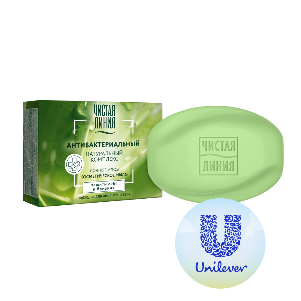 Мыло косметическое для лица, рук и тела Чистая Линия Антибактериальный Натуральный комплекс Сочное алоэ, 90г