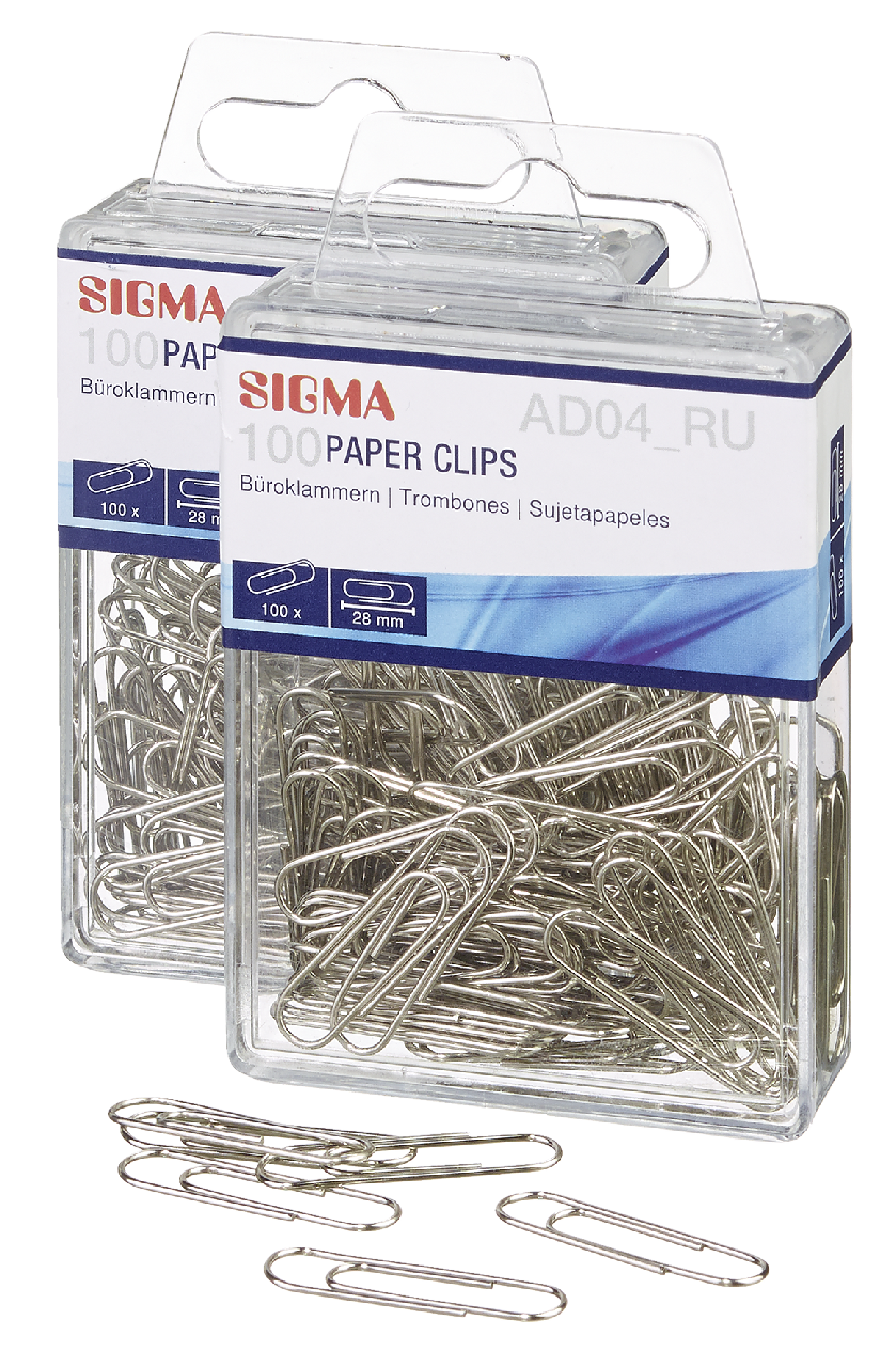 SIGMA Скрепки в пластиковой коробке 28мм, 100шт