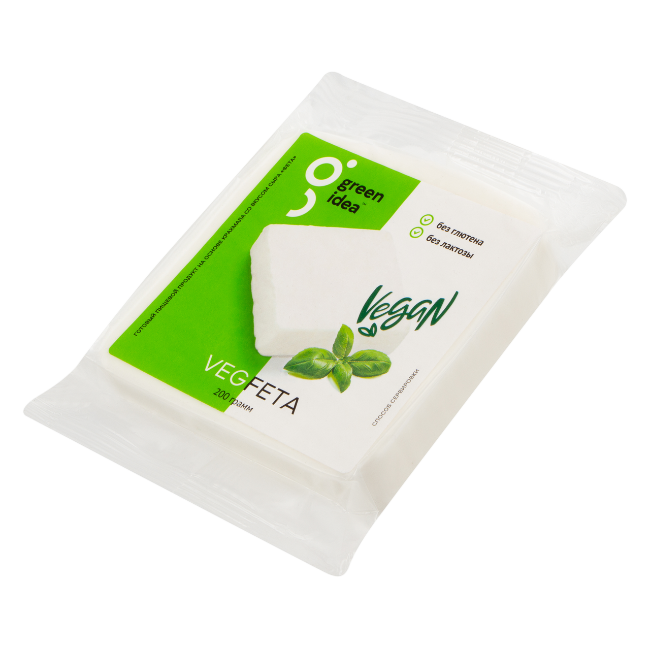 Продукт сырный GREEN IDEA фета веган кусок, 200г изготавливается на кокосовой основе и идеально подходит для веганов, людей с непереносимостью молочного белка и постящихся. Еще недавно этим людям было невозможно наслаждаться любимыми сырами, не нарушая своих пищевых привычек и убеждений. Растительный вариант практически идентичен обычной Фете из молока. Продукт не содержит в себе животного белка, лактозы, глютена, держит форму в холодных блюдах. Прекрасно подходит к овощным салатам, бутербродам, запеканкам, канапе и т.д. Сыр произведен под строгим контролем качества на основе крахмала и кокосового масла.Состав: вода питьевая, масло кокосовое рафинированное, загуститель дикрахмаладипат ацетилированный, крахмал картофельный, соль, регулятор кислотност�� глюконо-дельта-лактон, ароматизатор сыр Фета, краситель бета-каротин, консервант сорбиновая кислота. Не является готовым пищевым продуктом изготовленным по технологиям производства сыра и не содержит молочных жиров. Пищевая ценность: жиры 23г; углеводы 18,6г. Энергетическая ценность: 1167кДж/281ккал. Условия хранения: при температуре от 2C до 6C Срок годности: 90 дней