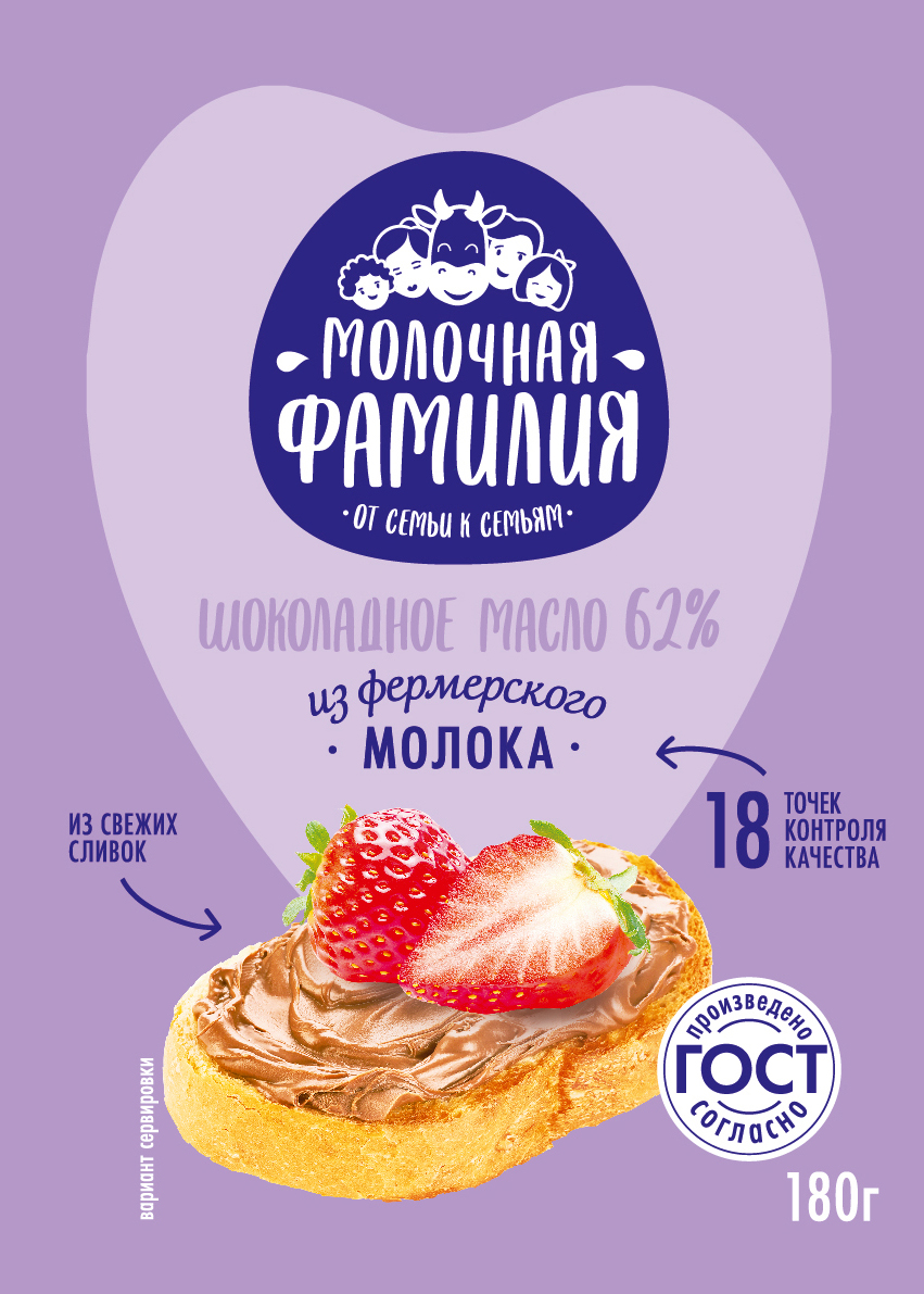 Масло сливочное шоколадное МОЛОЧНАЯ ФАМИЛИЯ, 62%, 180 г