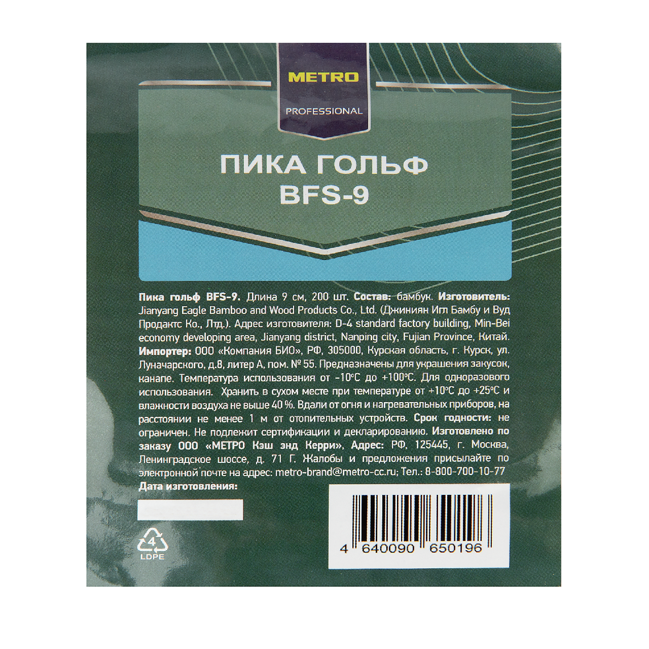 METRO PROFESSIONAL Пика Гольф бамбуковая 9см, 200шт