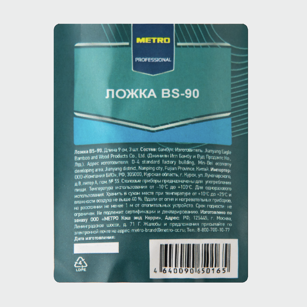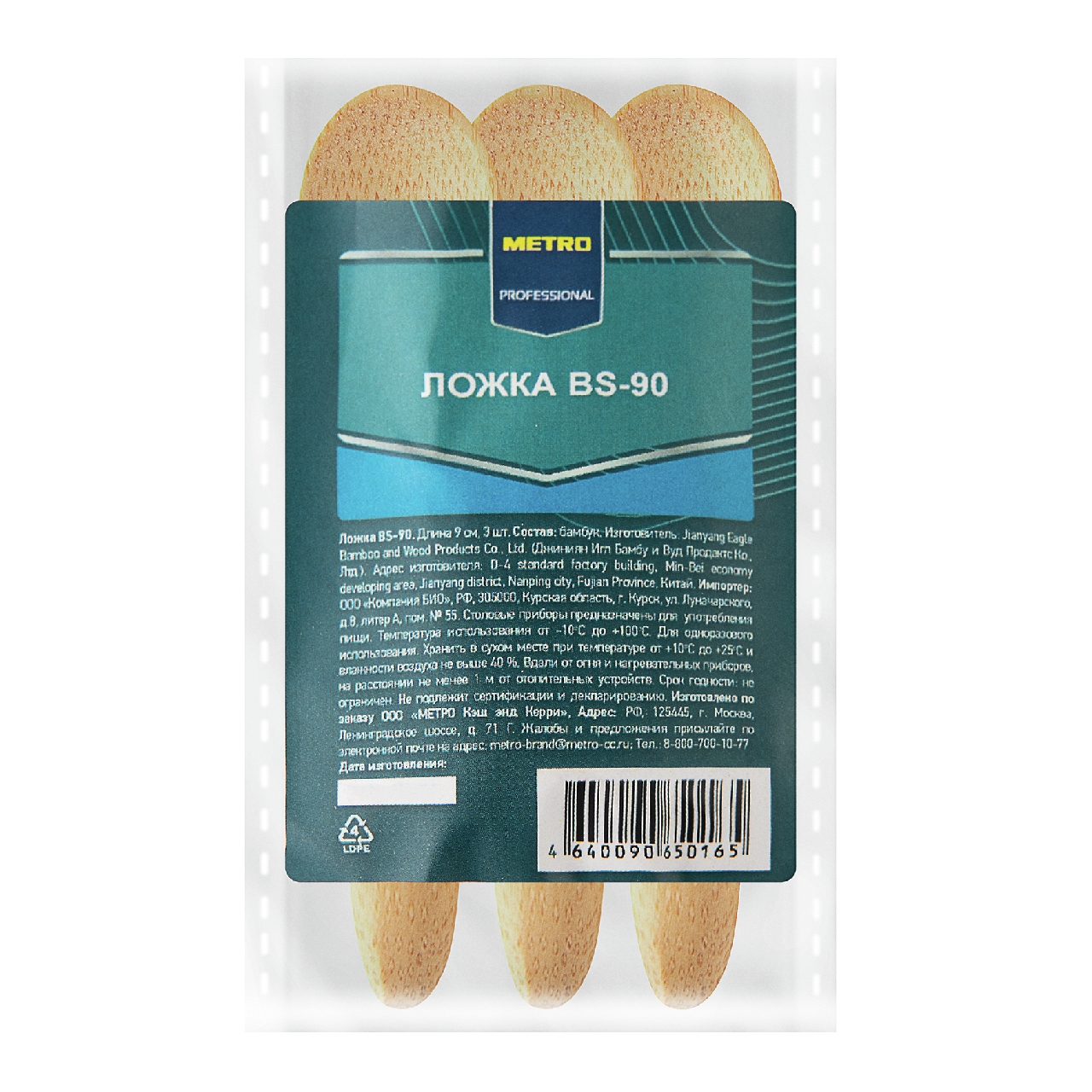 METRO PROFESSIONAL Ложка одноразовая бамбуковая 9см, 3шт