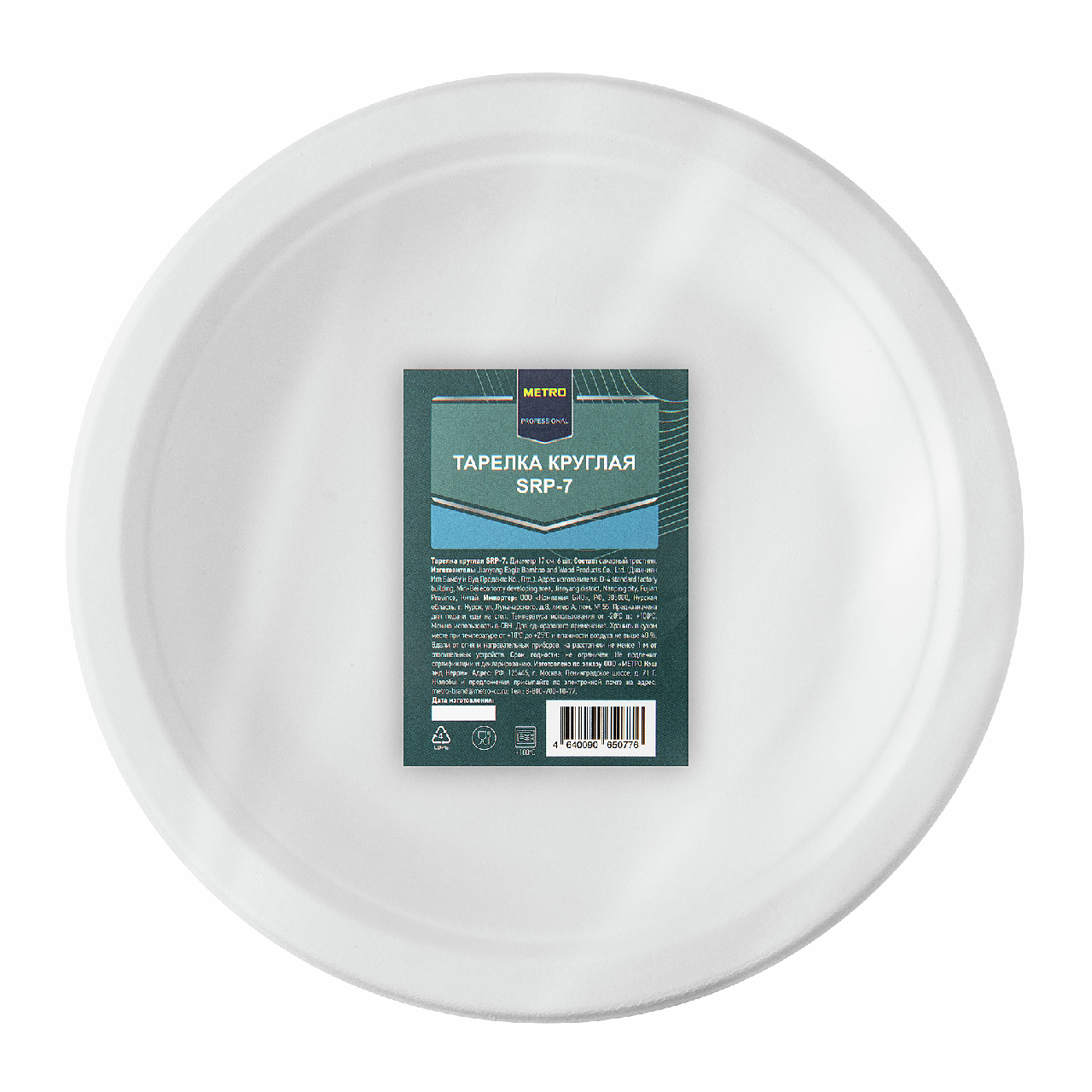 Тарелка METRO PROFESSIONAL - это изделие из экологичного материала (сахарный тростник), предназначеное для подачи еды во время праздников, застолий, пикников. Сахарный тростник биоразлагаем, поэтому использование одноразовой посуды из экоматериалов позволит сократить загрязнение среды пластиком. Диаметр тарелки 17 см.