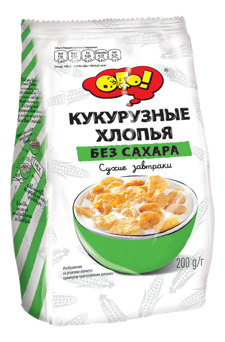 Хлопья Ого! кукурузные без сахара, 200г