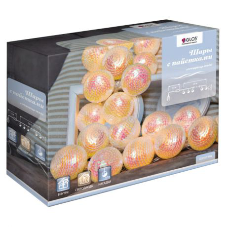 Гирлянда Glos Шары 10Led теплый белый, 1.8м