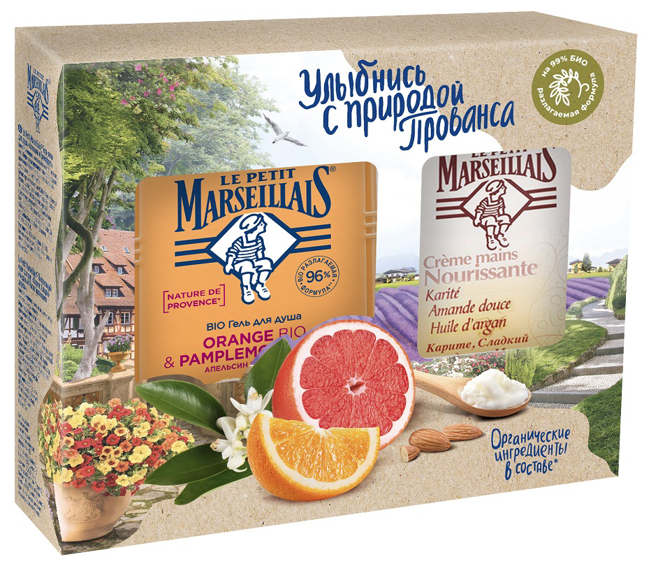 Подарочный набор Le Petit Marseillais гель для душа Апельсин и Грейпфрут 250 мл + крем для рук Карите и Миндаль 75мл
