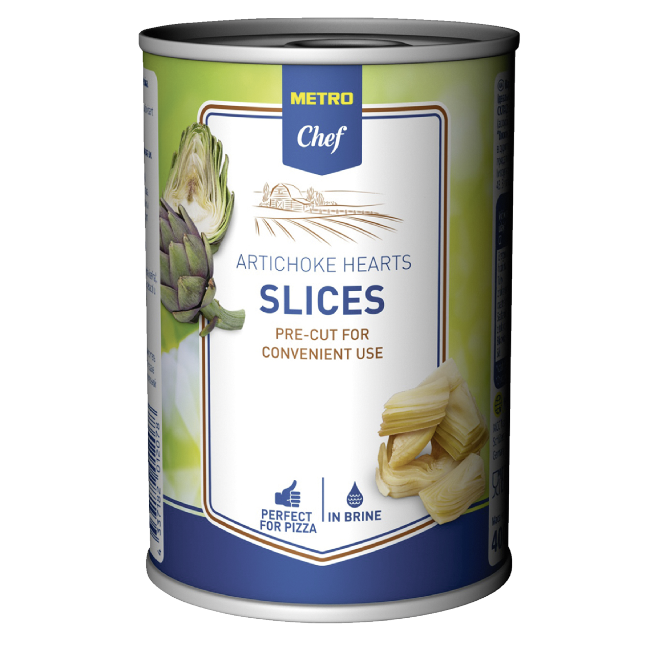 Артишоки Metro Chef, резаные, 400-425 г представляют собой овощные консервы в собственном соку. Экологичный продукт не содержит консервантов, искусственных добавок, ГМО. Артишоки отличаются приятным внешним видом, чистыми бутонами, которые можно употреблять в сыром виде, готовить на гриле или пару, жарить, варить или тушить. Пикантный рассол идеально сочетается с оливковым маслом, чесноком. Регулярное употребление продукта в качестве свежей закуски, в составе салатов поможет сбалансировать уровень сахара, улучшит работу пищеварительной системы, сердца, селезенки, печени. В состав артишоков входят клетчатка, минимальное количество жиров, максимальный процент витаминов, фосфора, магния.