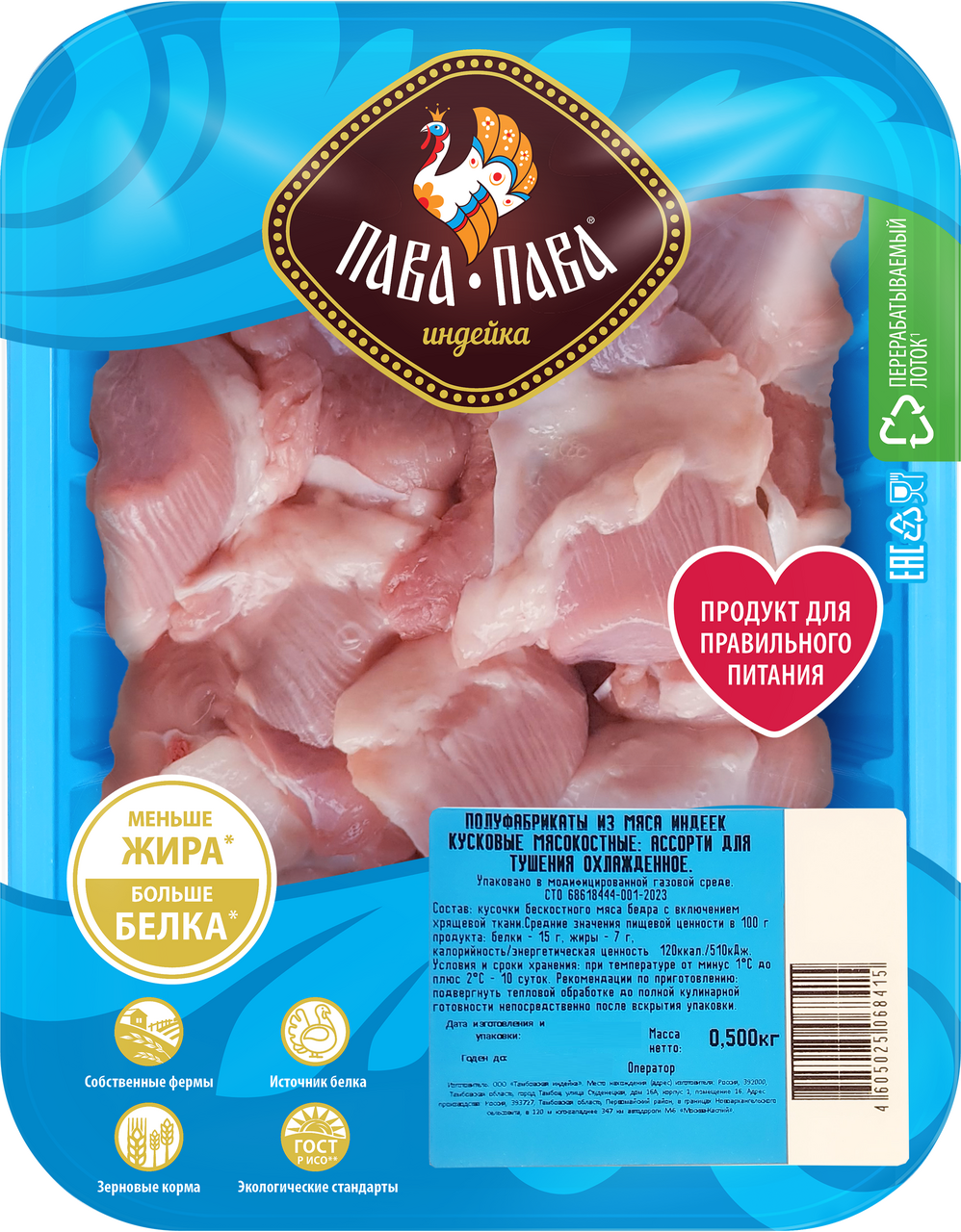 Ассорти для тушения из индейки Пава Пава охлажденное, 500г
