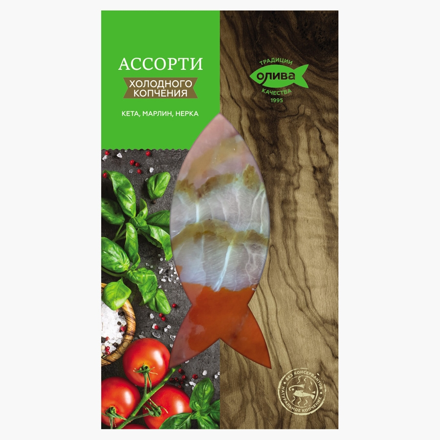 Ассорти рыбное Олива кета марлин+нерка холодного копчения, 150г