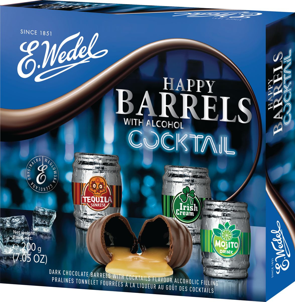 Ассорти шоколадных конфет E.Wedel Happy Barrels с коктейльными начинками, 200г