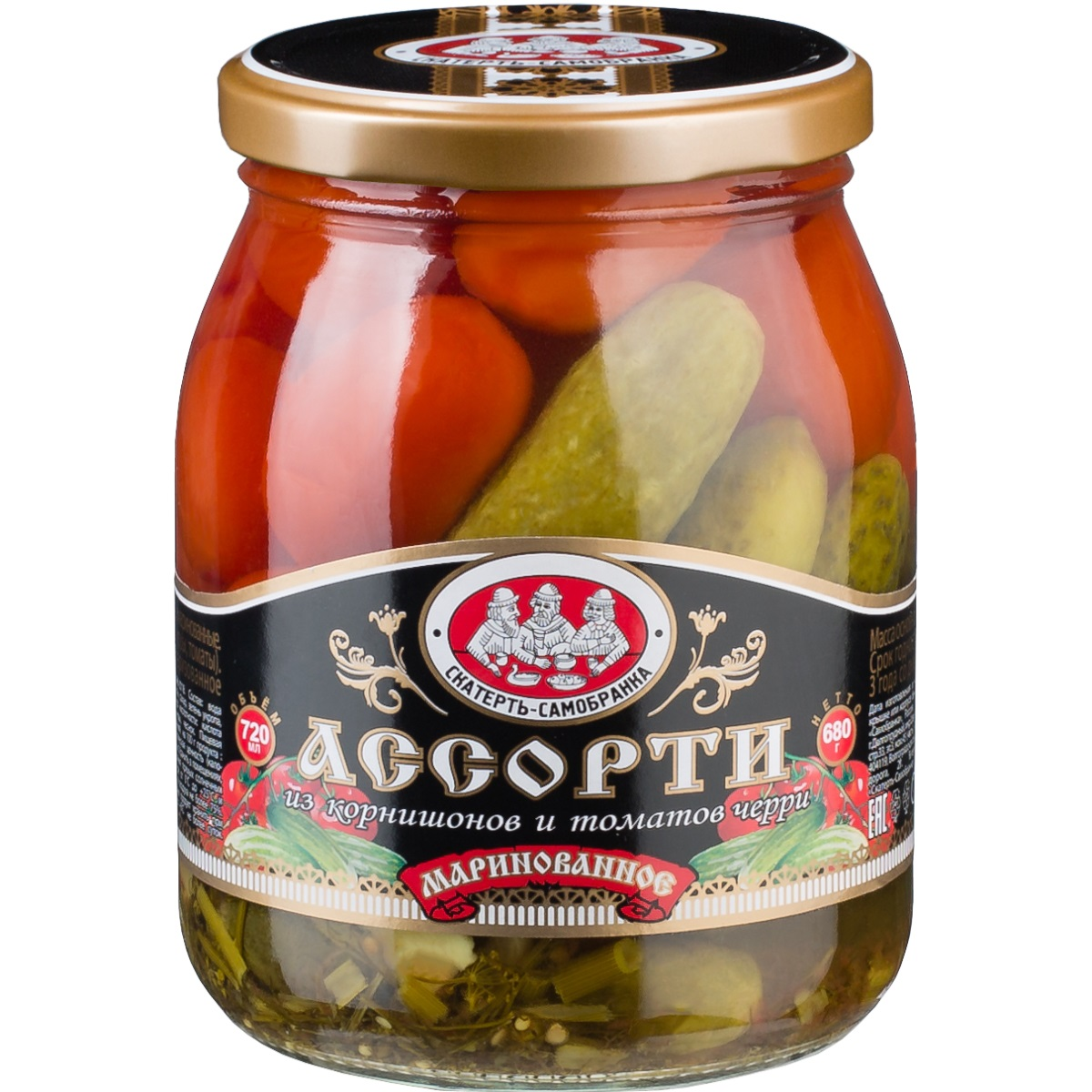 Ассорти овощное маринованное Скатерть-самобранка Томаты черри и корнишоны, 720мл