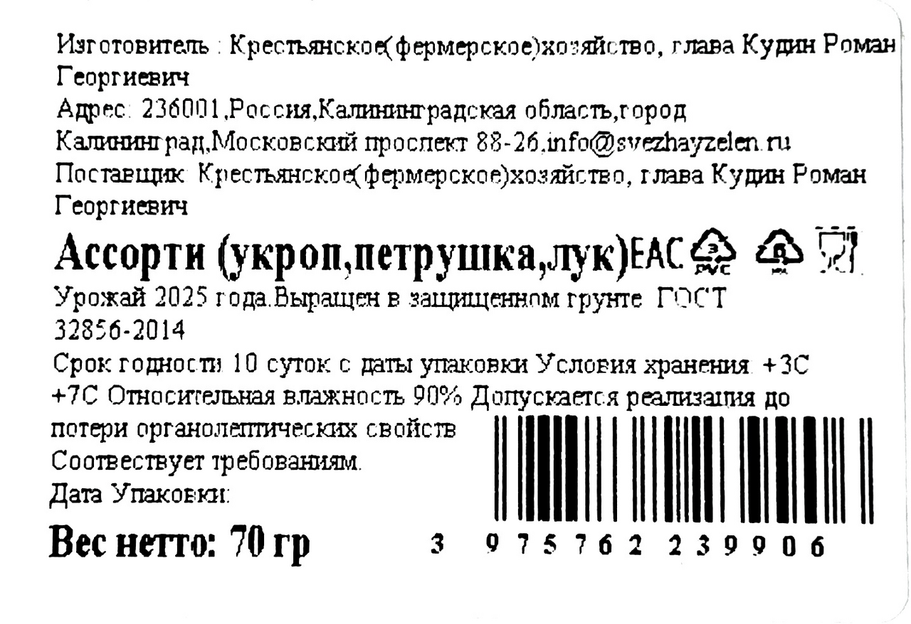Ассорти зелени укроп петрушка и зеленый лук, 70г