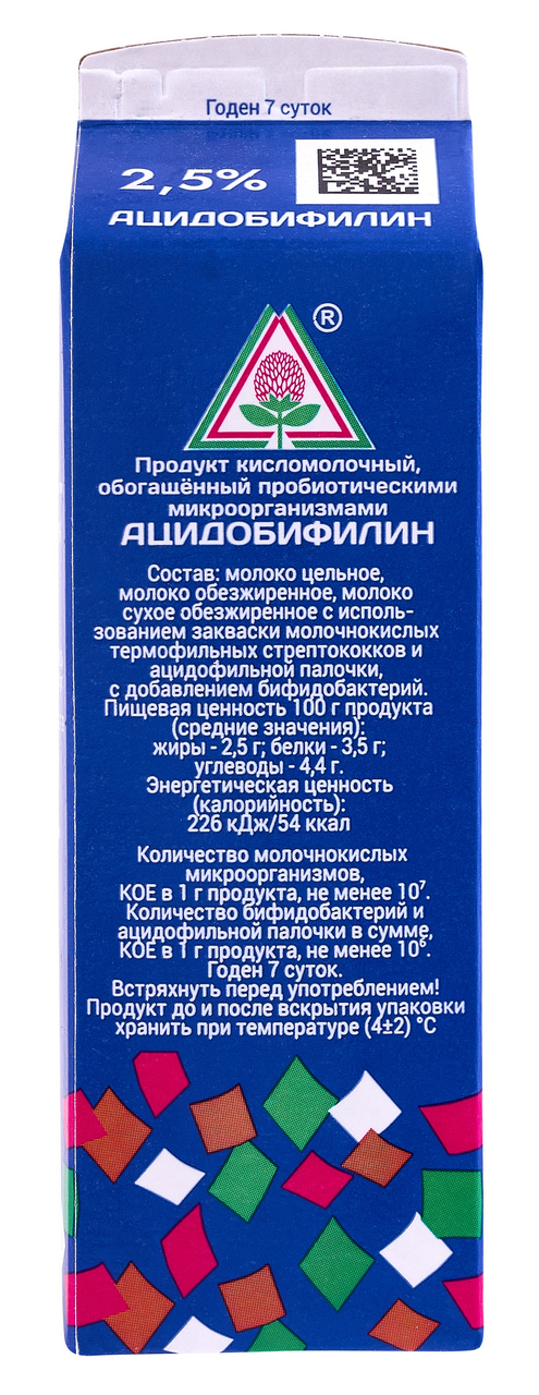 Продукт кисломолочный, обогащенный пробиотическими микроорганизмами Ацидобифилиин Пискарёвский. Натуральный кисломолочный напиток, который изготовлен по технологии сквашивания. Известен своими полезными свойствами.