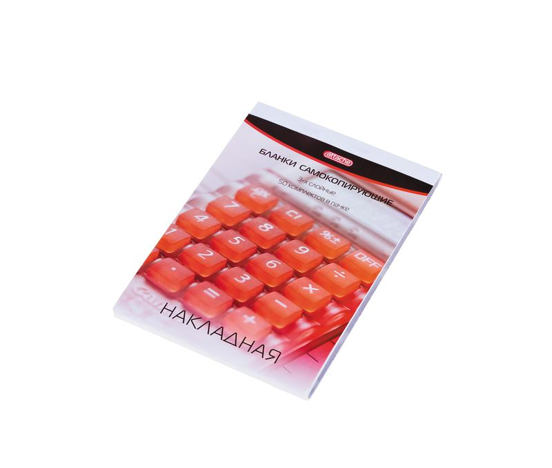 Самокопирующие бланки Накладная изготовлены в виде книжки, обложка которой выполнена из глянцевой мелованной бумаги. Поверхность изделия декорирована рисунком. Каждый бланк состоит из трех листов офсетной бумаги формата А5. Книжка самокопирующихся бланков Накладная содержит 50 экземпляров. Чтобы избежать копирования на последующие слои, необходимо положить отворот обложки под заполняемый бланк.