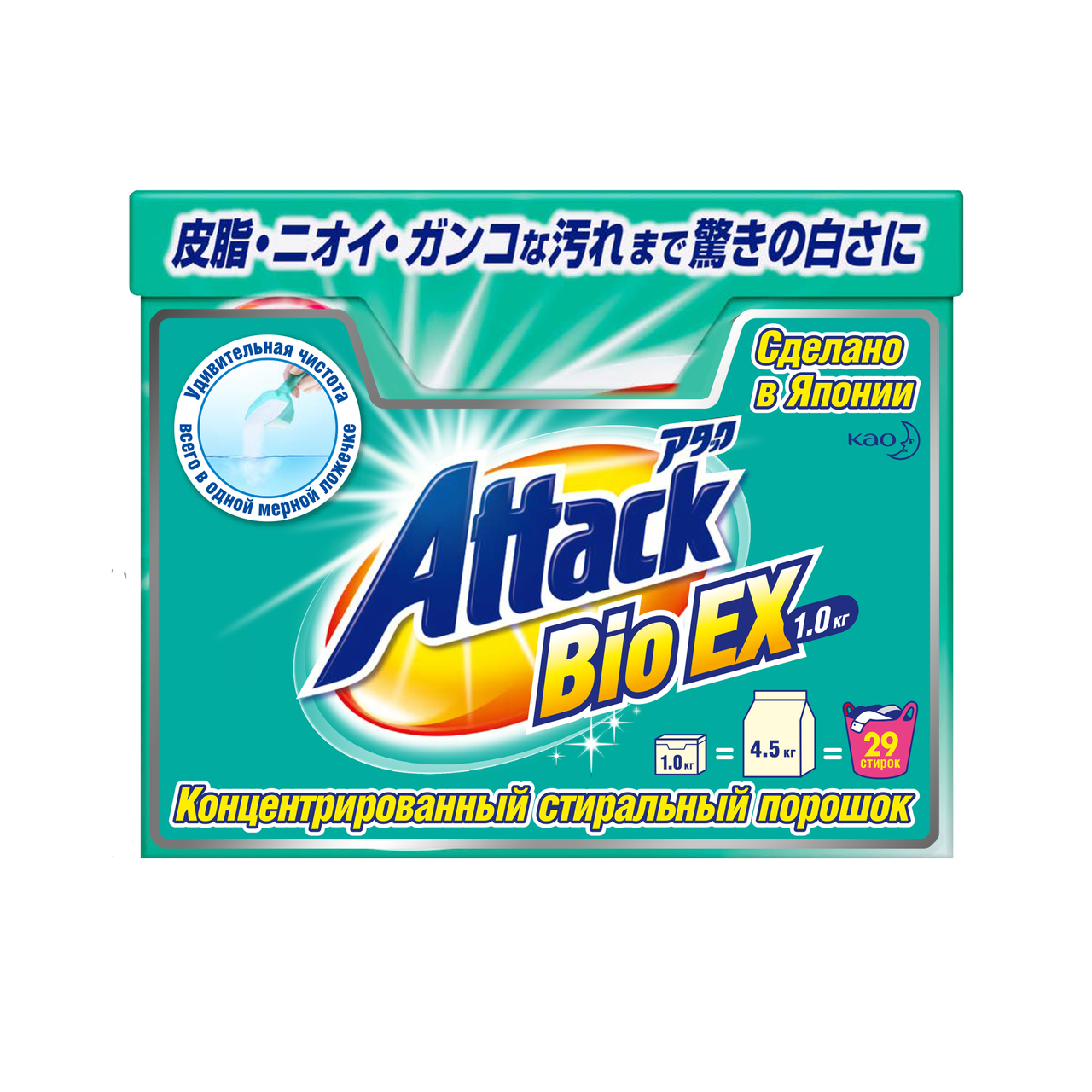 Attack Стиральный порошок концентрированный универсальный BioEX 0,9кг
